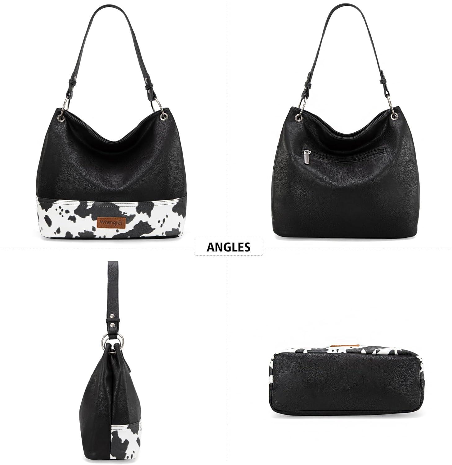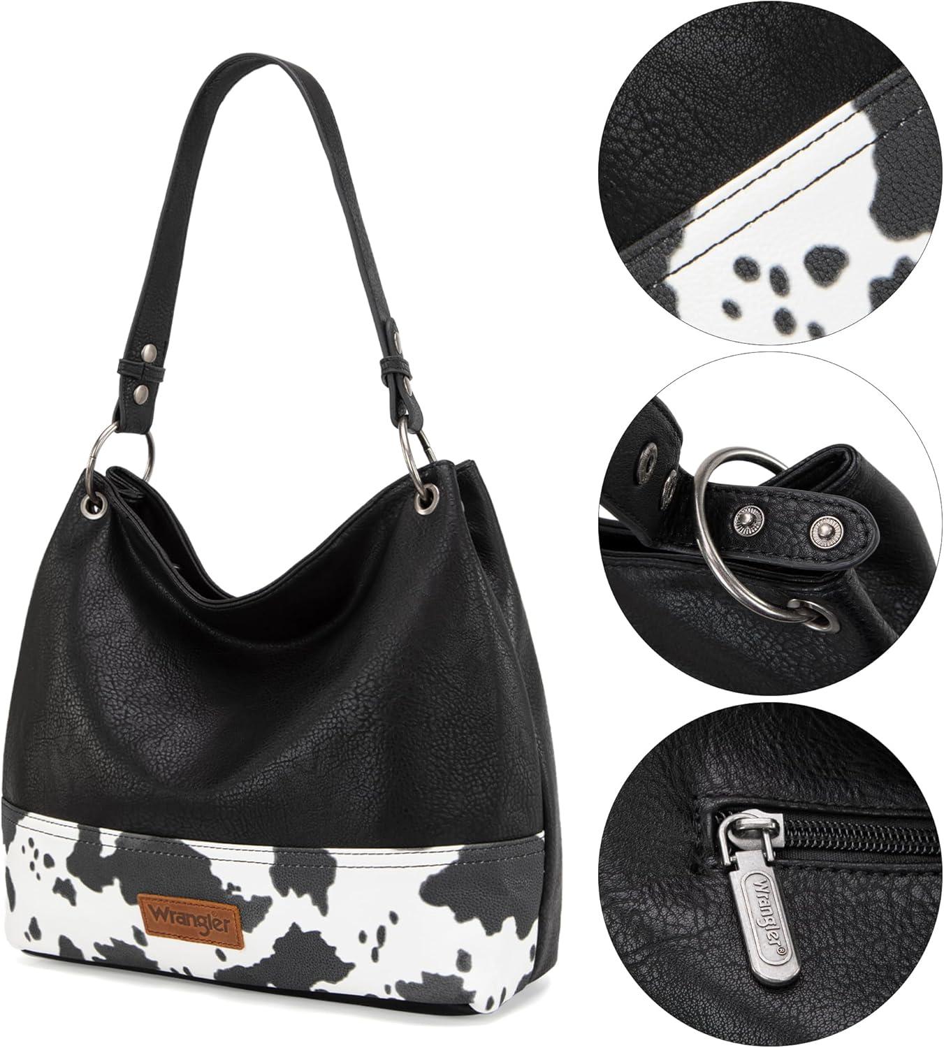 Wrangler Hobo Bags for Women Vegan Leather Top Handle Shoulder Purses and Handbags(Cow Print Black)