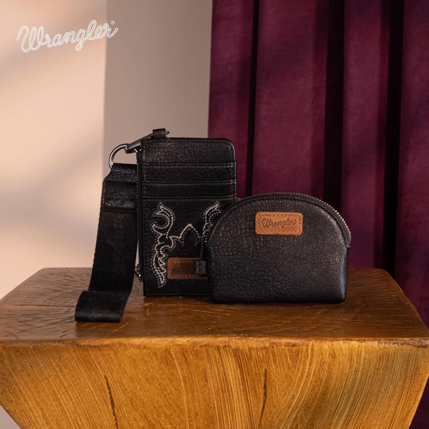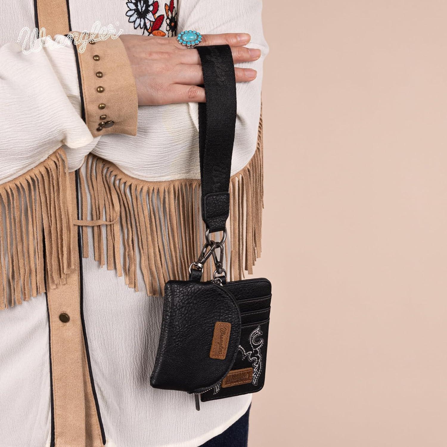 Discover the latest Wrangler KeyChain Wristlet Wallets for Women Western Dual Pouch Wristlet Embroidered Boot Scroll Card Holder Wallet With Zipper(Black) from and take advantage of our limited-time introductory offer.