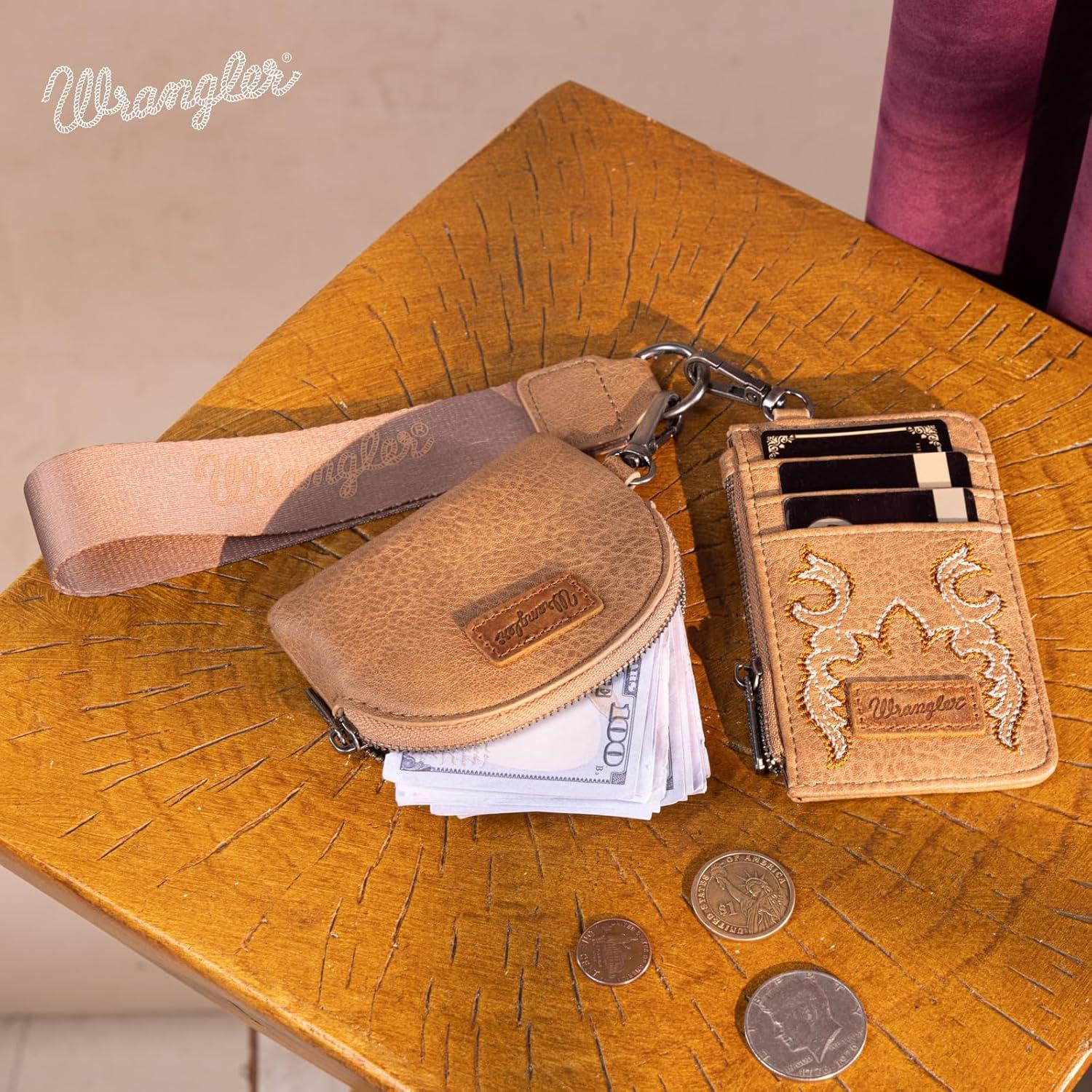 Don’t miss out on our limited-time offer: buy Wrangler KeyChain Wristlet Wallets for Women Western Dual Pouch Wristlet Embroidered Boot Scroll Card Holder Wallet With Zipper(khaki), get {accessory} 50% off!