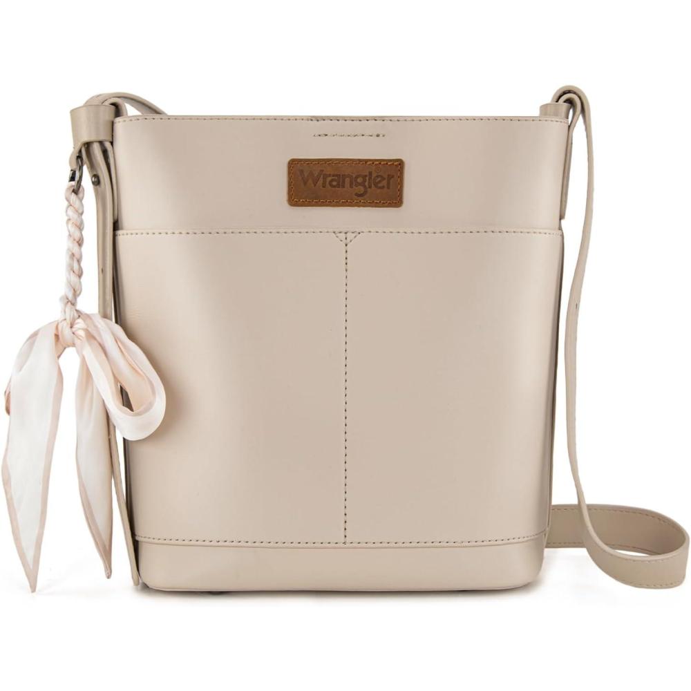 Wrangler Large Crossbody Purse for Women Cross Body Bag with Scarves(Cream Tan)