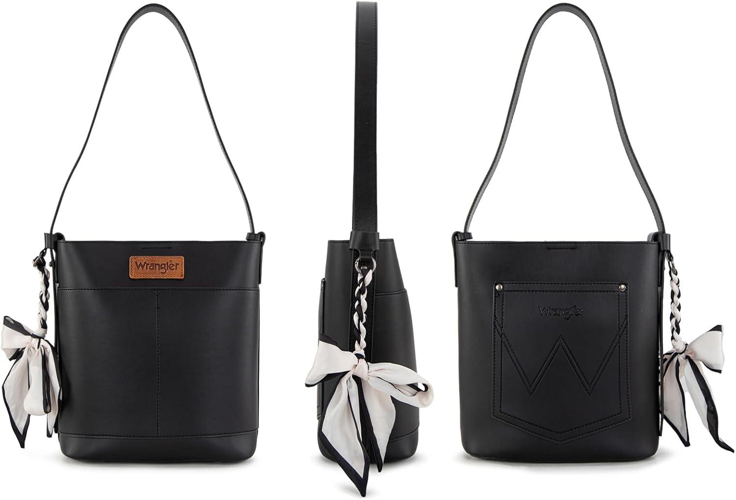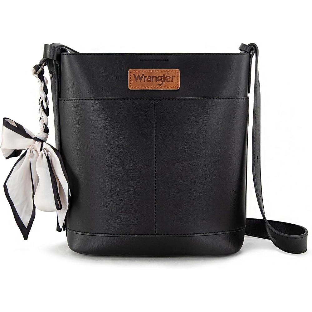 Wrangler Large Crossbody Purse for Women Cross Body Bag with Scarves(Rich Black)