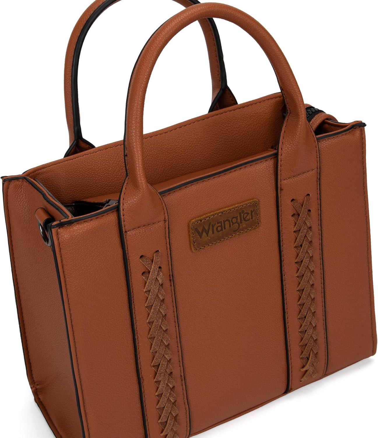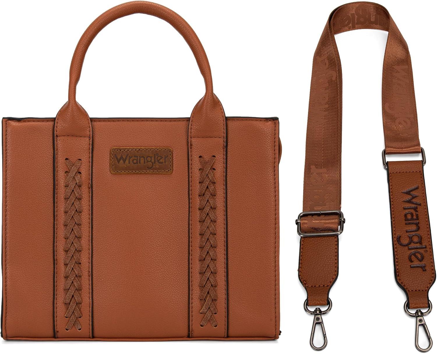 Wrangler Medium Tote Bag for Women Designer Satchel Handbags Top-handle Purses with Strap(A-natural-brown)