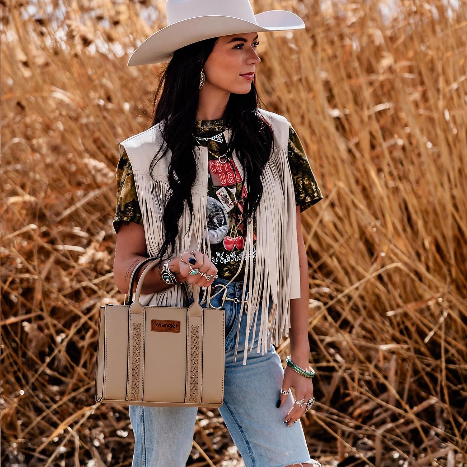 Wrangler Medium Tote Bag for Women Designer Satchel Handbags Top-handle Purses with Strap(A-natural-grey)