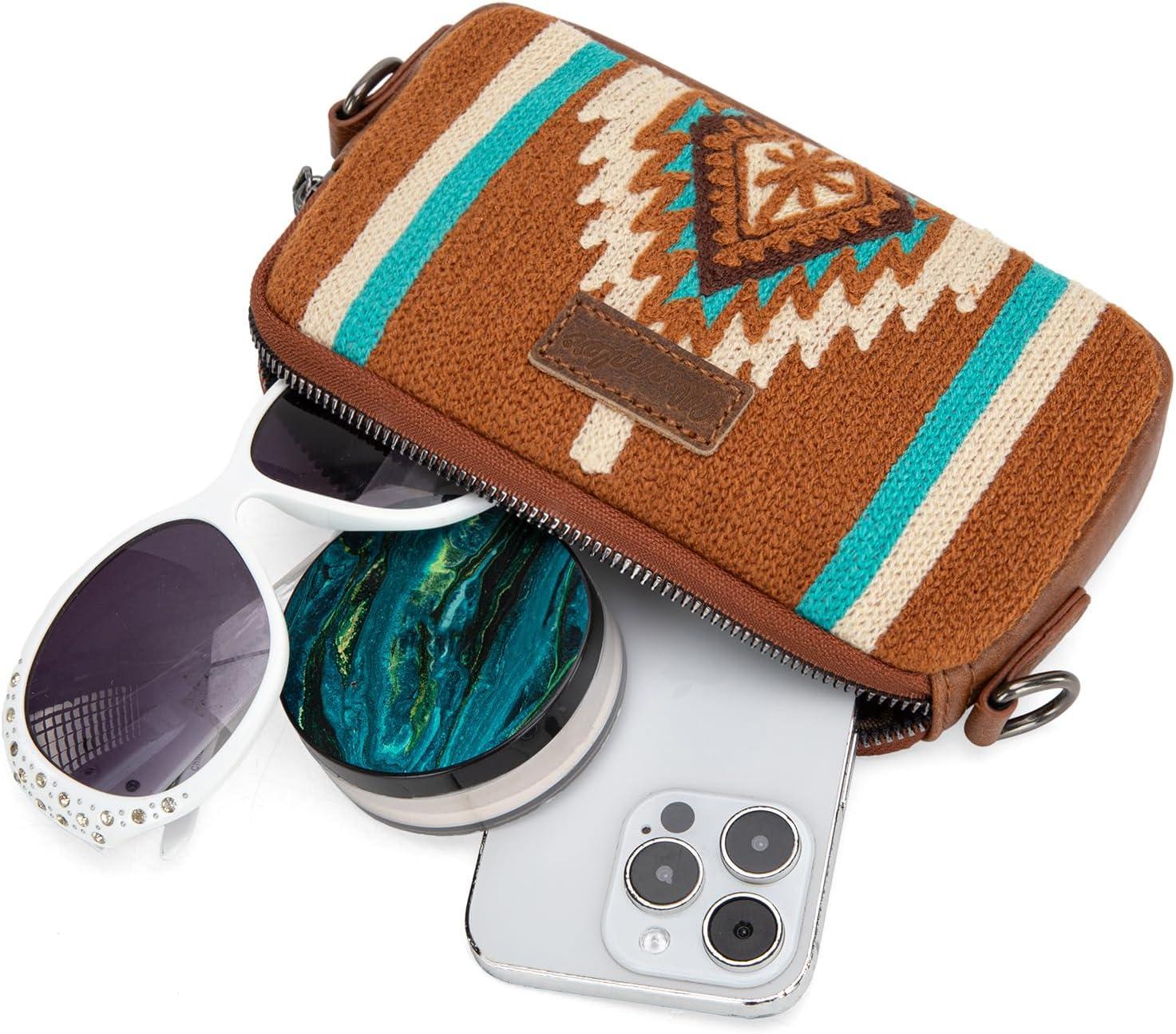 imageWrangler Mini Crossbody Purse for Women Western Aztec Clutch Designer Tapestry Shoulder HandbagsBrown
