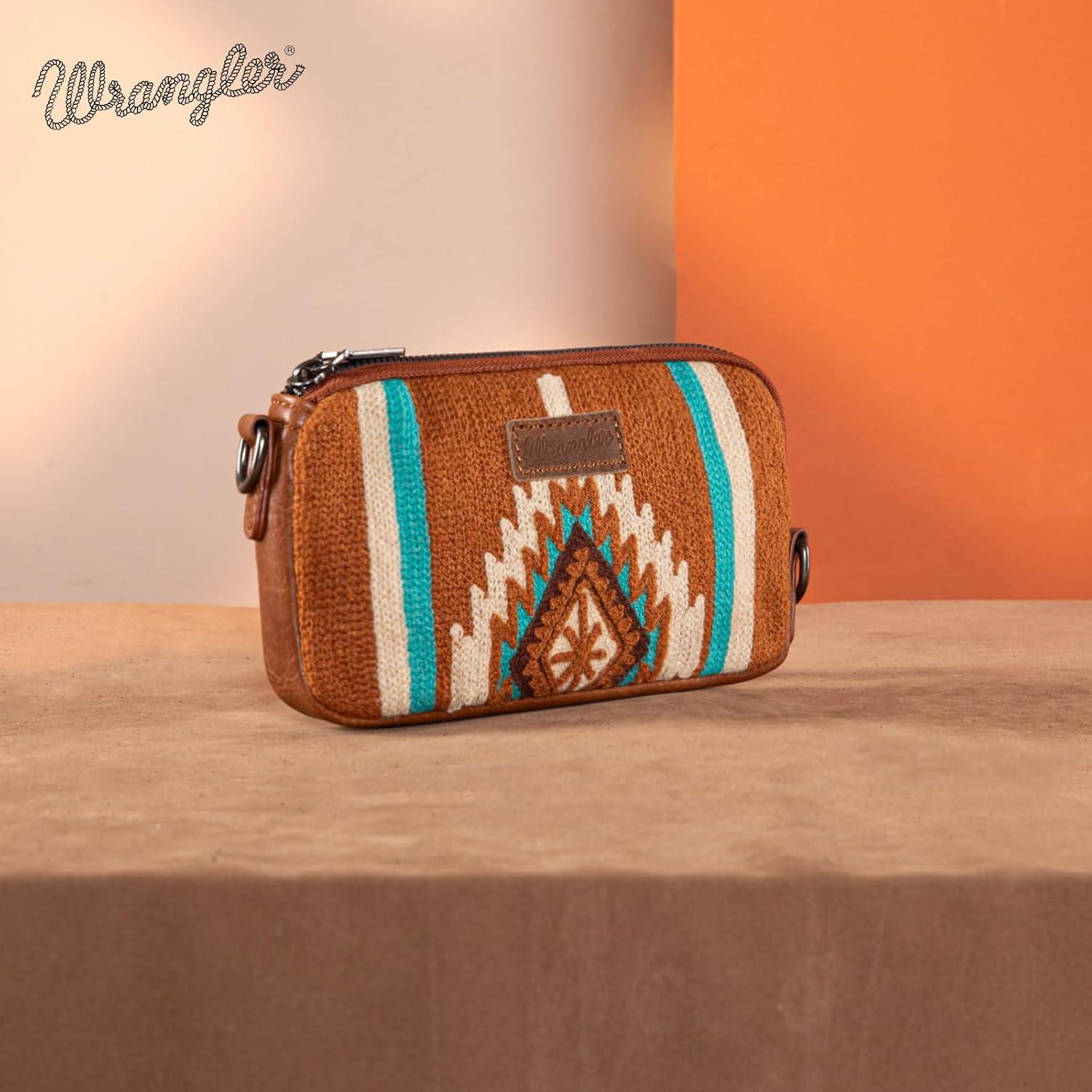 Wrangler Mini Crossbody Purse for Women Western Aztec Clutch Designer Tapestry Shoulder Handbags(Brown)