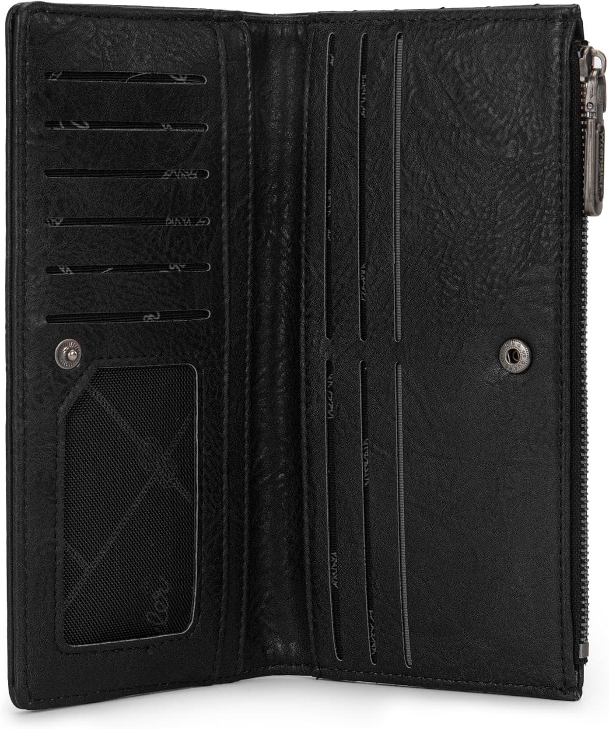 Wrangler Minimalist Wallet for Women Credit Card Wallet Ladies Travel Wallets Monederos de Mujer Card Cases & Money Organizers with Smooth Zippers Tan(A-Black)