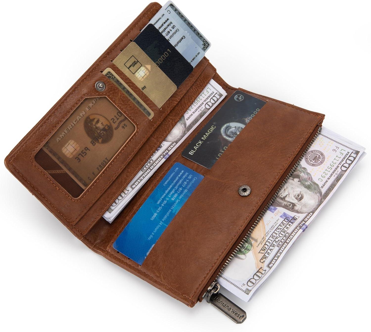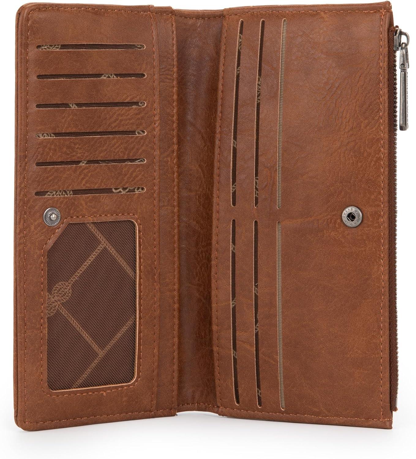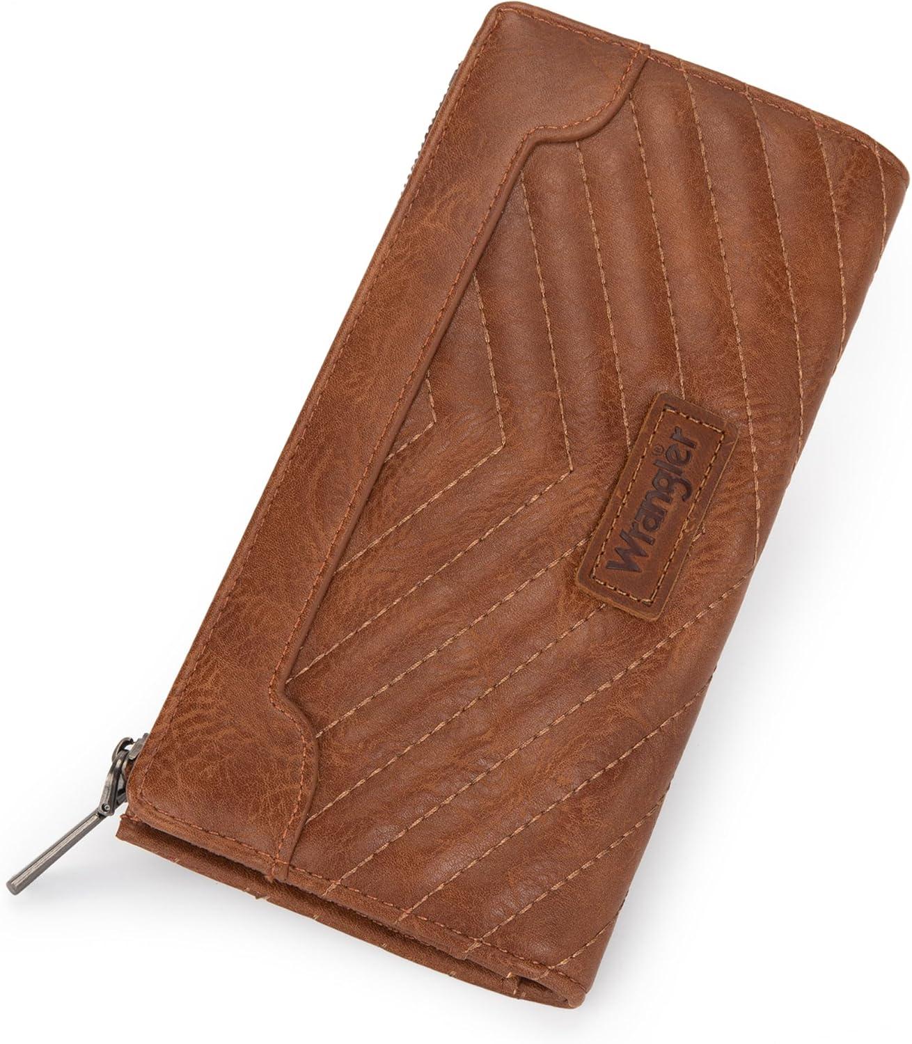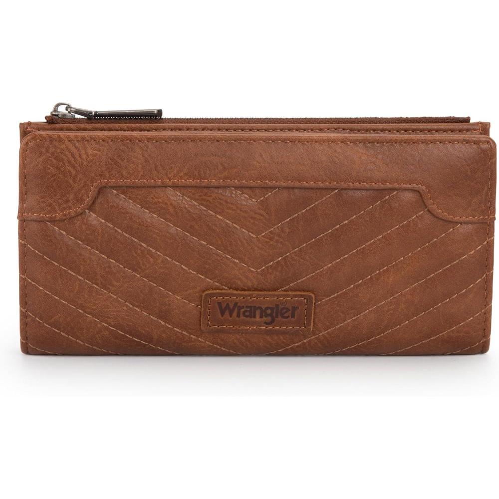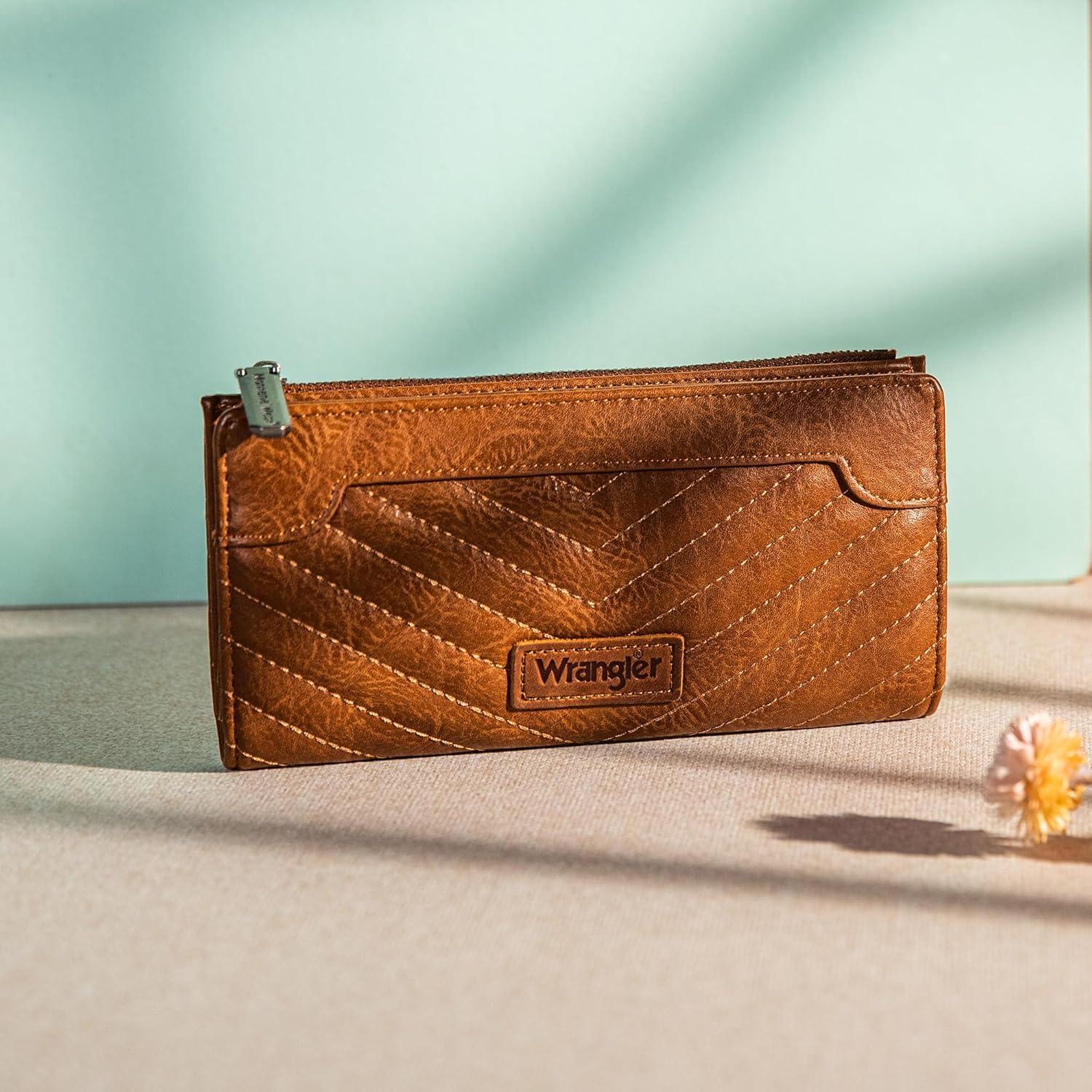 Wrangler Minimalist Wallet for Women Credit Card Wallet Ladies Travel Wallets Monederos de Mujer Card Cases & Money Organizers with Smooth Zippers Tan(A-Brown)