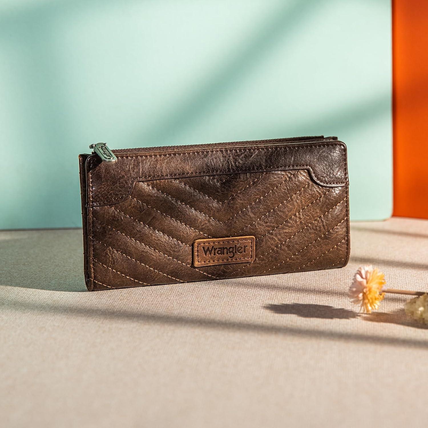 Wrangler Minimalist Wallet for Women Credit Card Wallet Ladies Travel Wallets Monederos de Mujer Card Cases & Money Organizers with Smooth Zippers Tan(A-Coffee)