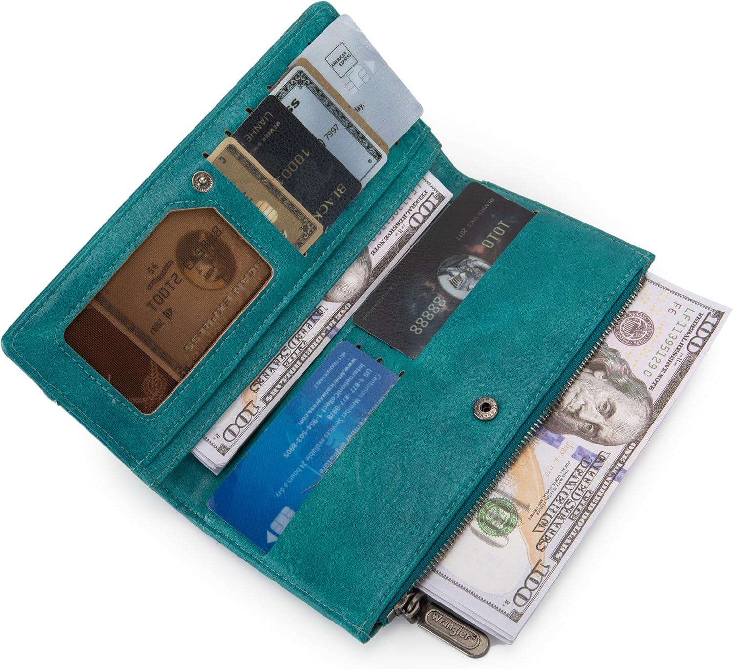 Save big on Wrangler Minimalist Wallet for Women Credit Card Wallet Ladies Travel Wallets Monederos de Mujer Card Cases & Money Organizers with Smooth Zippers Tan(A-Turquoise) and accessories during our BOGO sale. Buy one, get one 50% off!