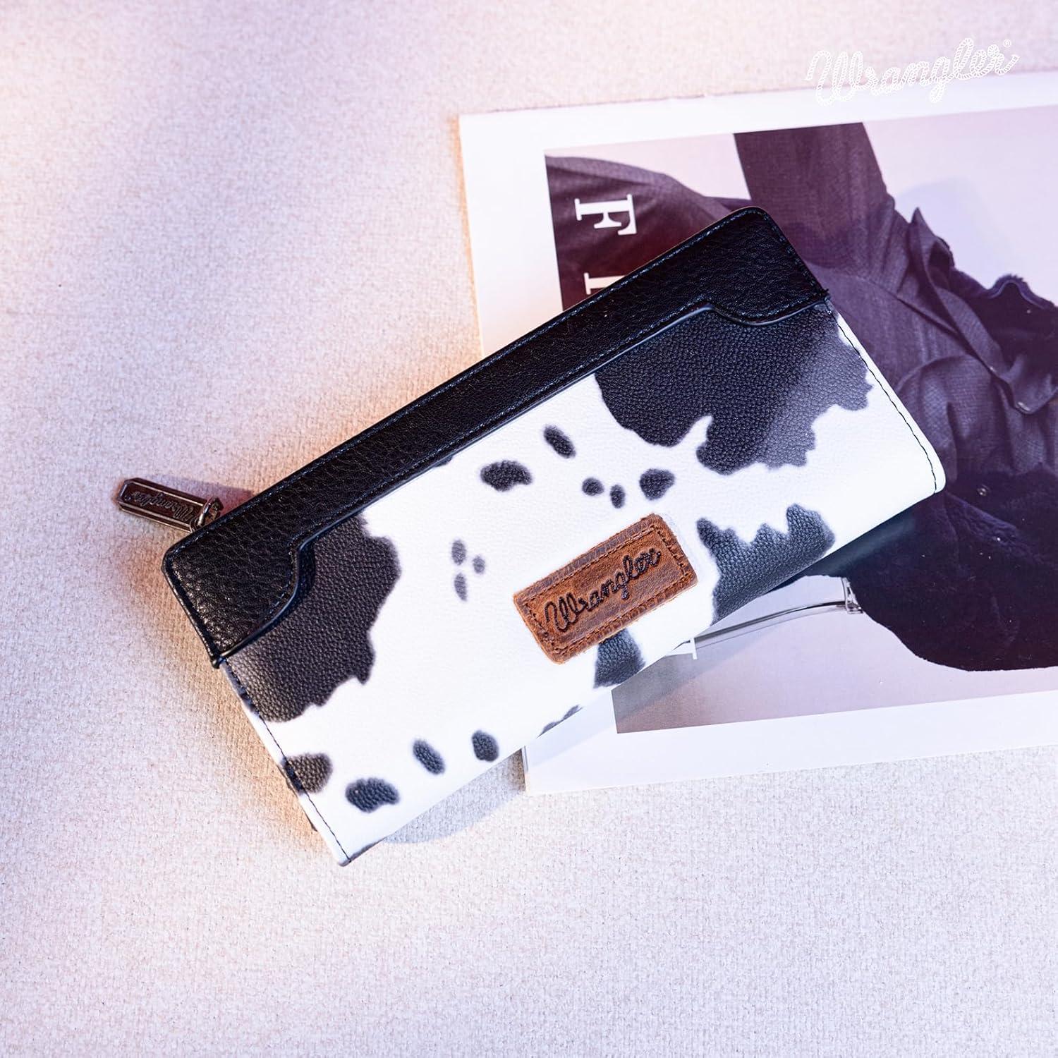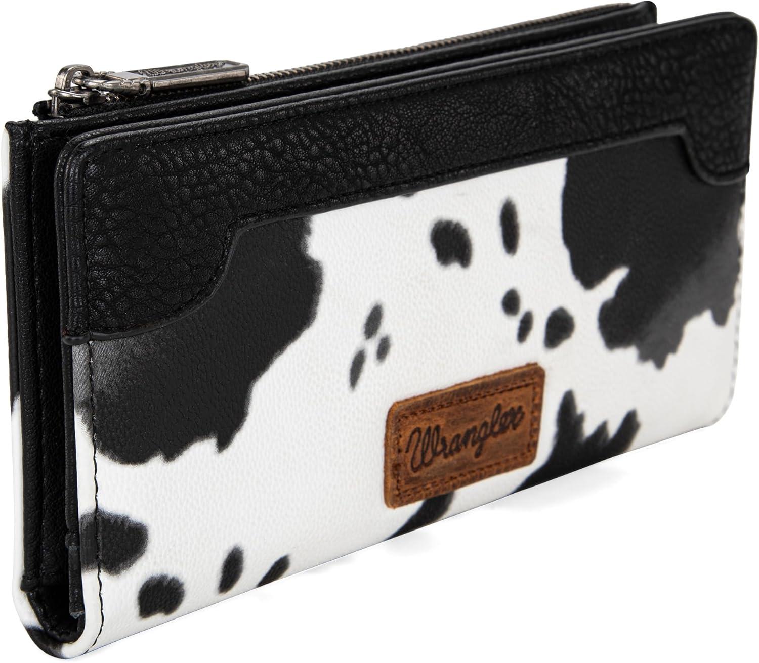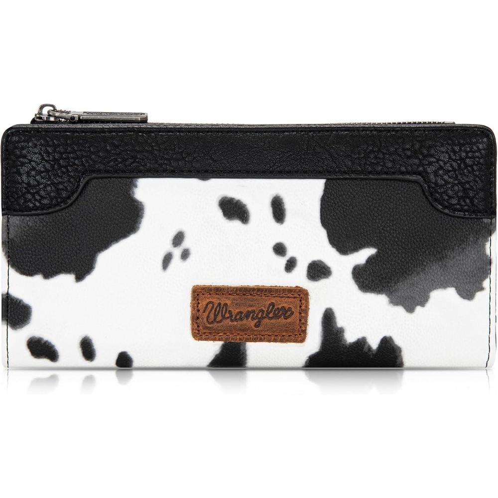 Wrangler Minimalist Wallet for Women Credit Card Wallet Ladies Travel Wallets Monederos de Mujer Card Cases & Money Organizers with Smooth Zippers Tan(Cow Print - Black)