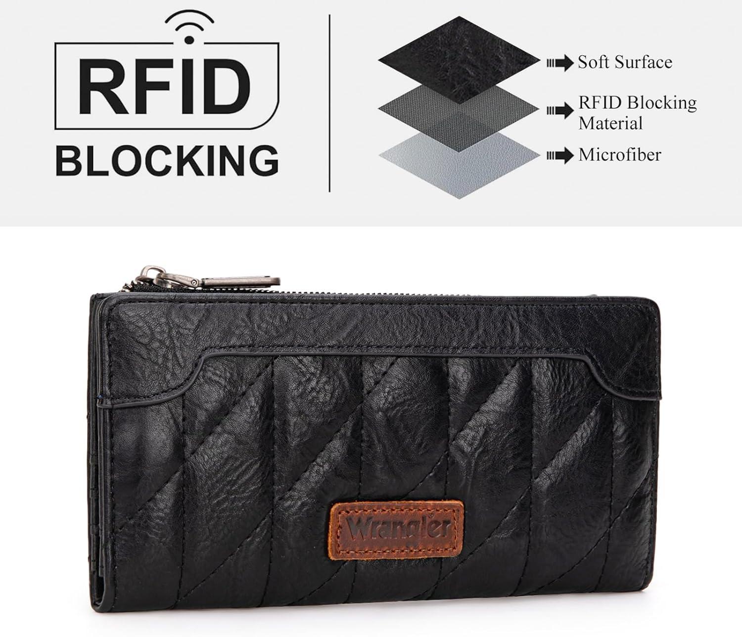 Wrangler Minimalist Wallet for Women Credit Card Wallet Ladies Travel Wallets Monederos de Mujer Card Cases & Money Organizers with Smooth Zippers Tan(Quilted – Black)