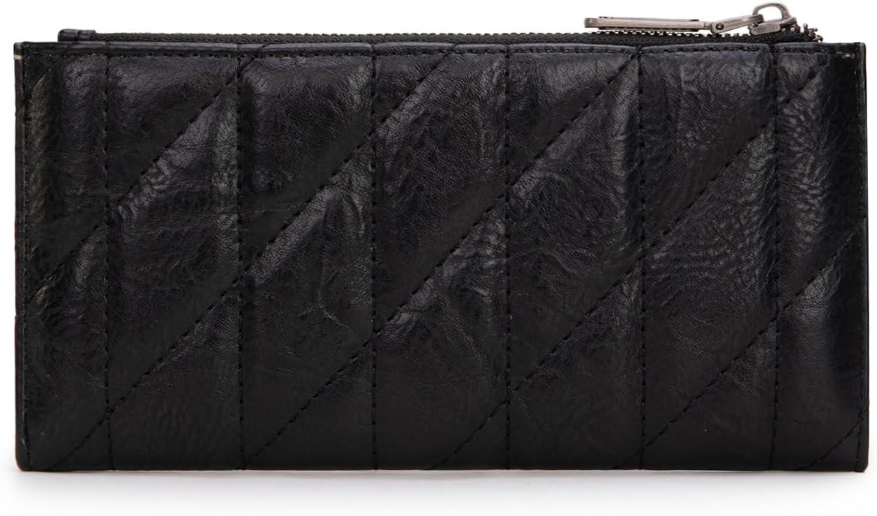 imageWrangler Minimalist Wallet for Women Credit Card Wallet Ladies Travel Wallets Monederos de Mujer Card Cases ampamp Money Organizers with Smooth Zippers TanQuilted  Black