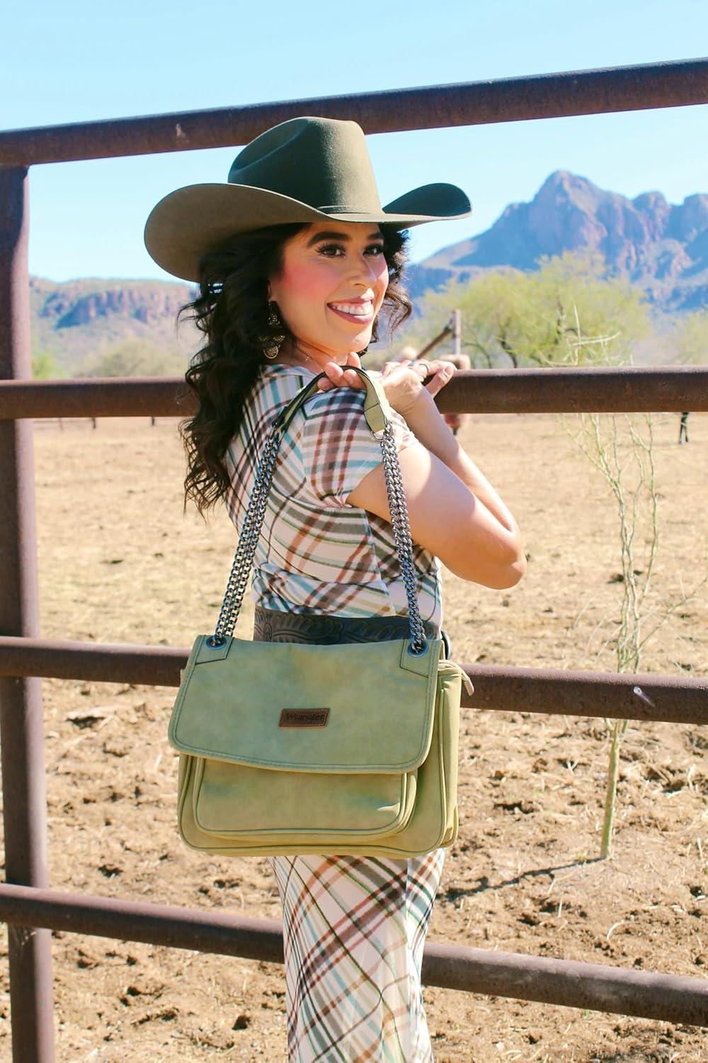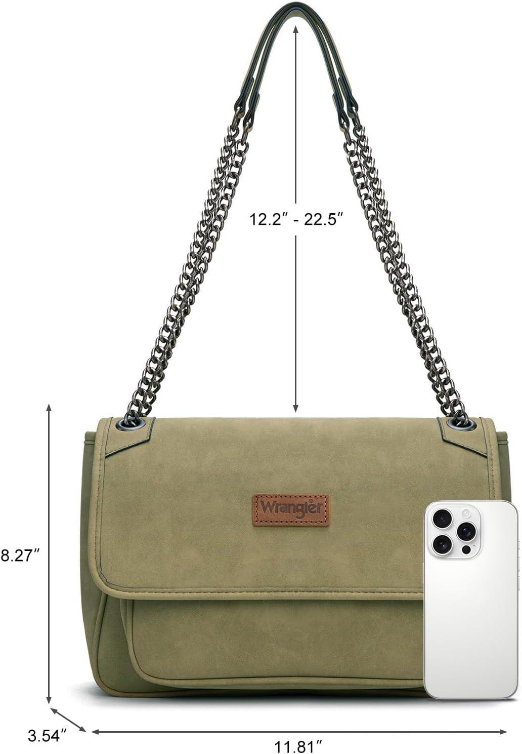 Wrangler Shoulder Bag for Women Retro Purses and Handbags Crossbody Bags with Chain Strap(Green)