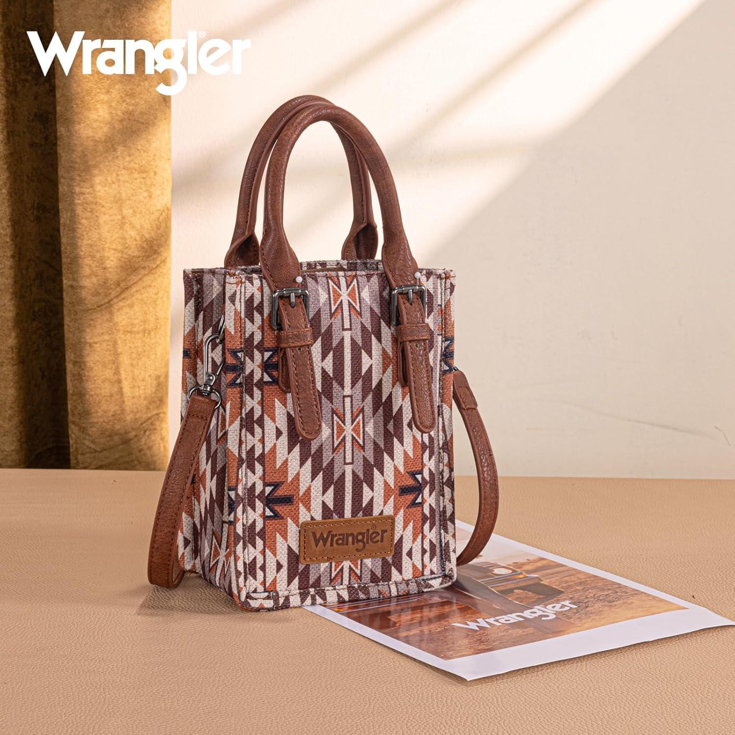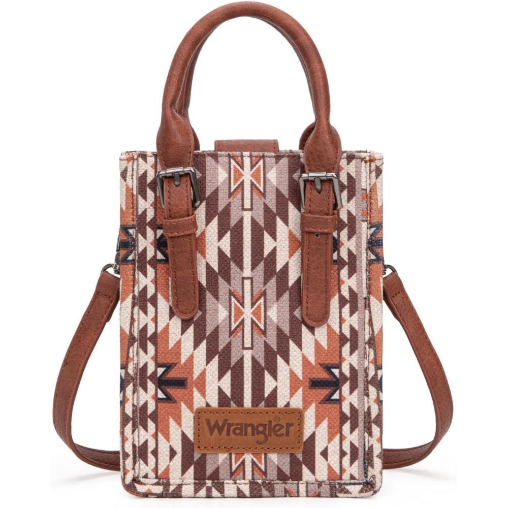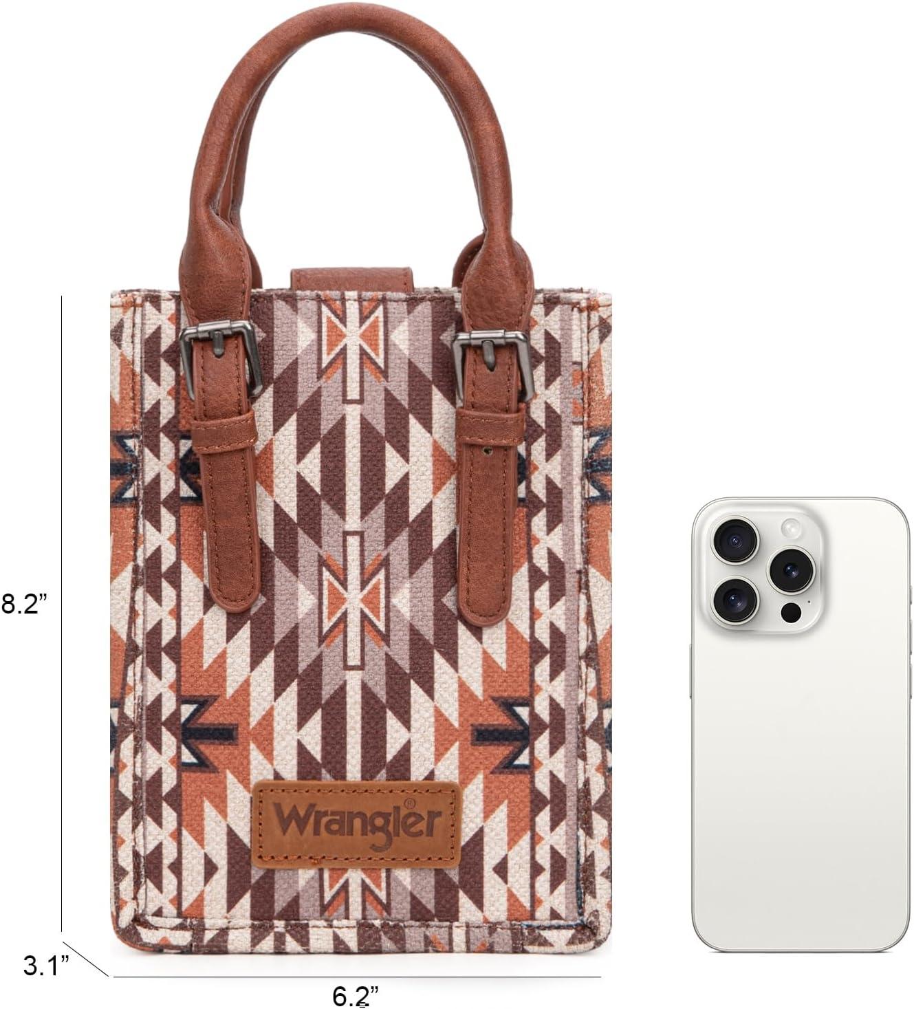Wrangler Small Crossbody Bags for Women Aztec Cow Print Small Western Purse and Mini Handbag(Angel-coffee)