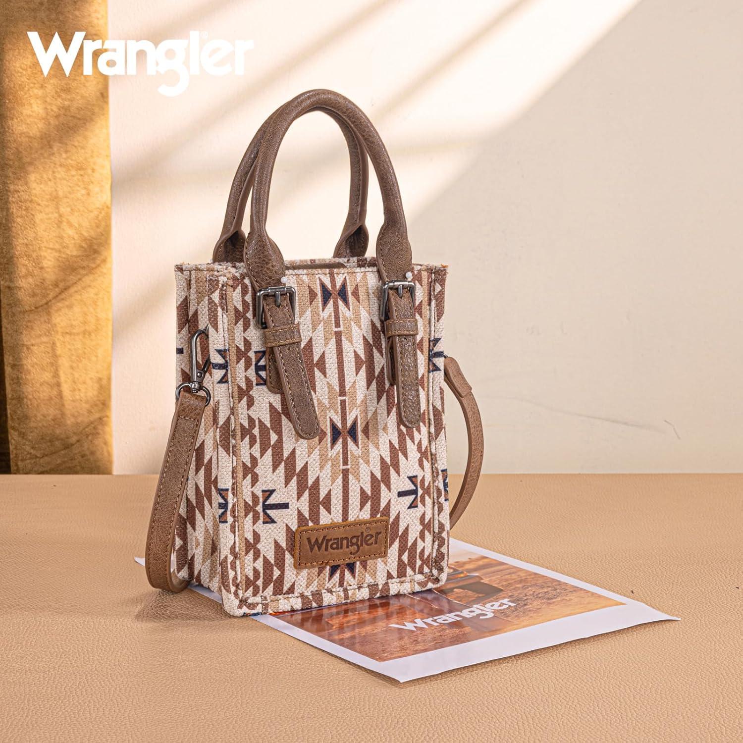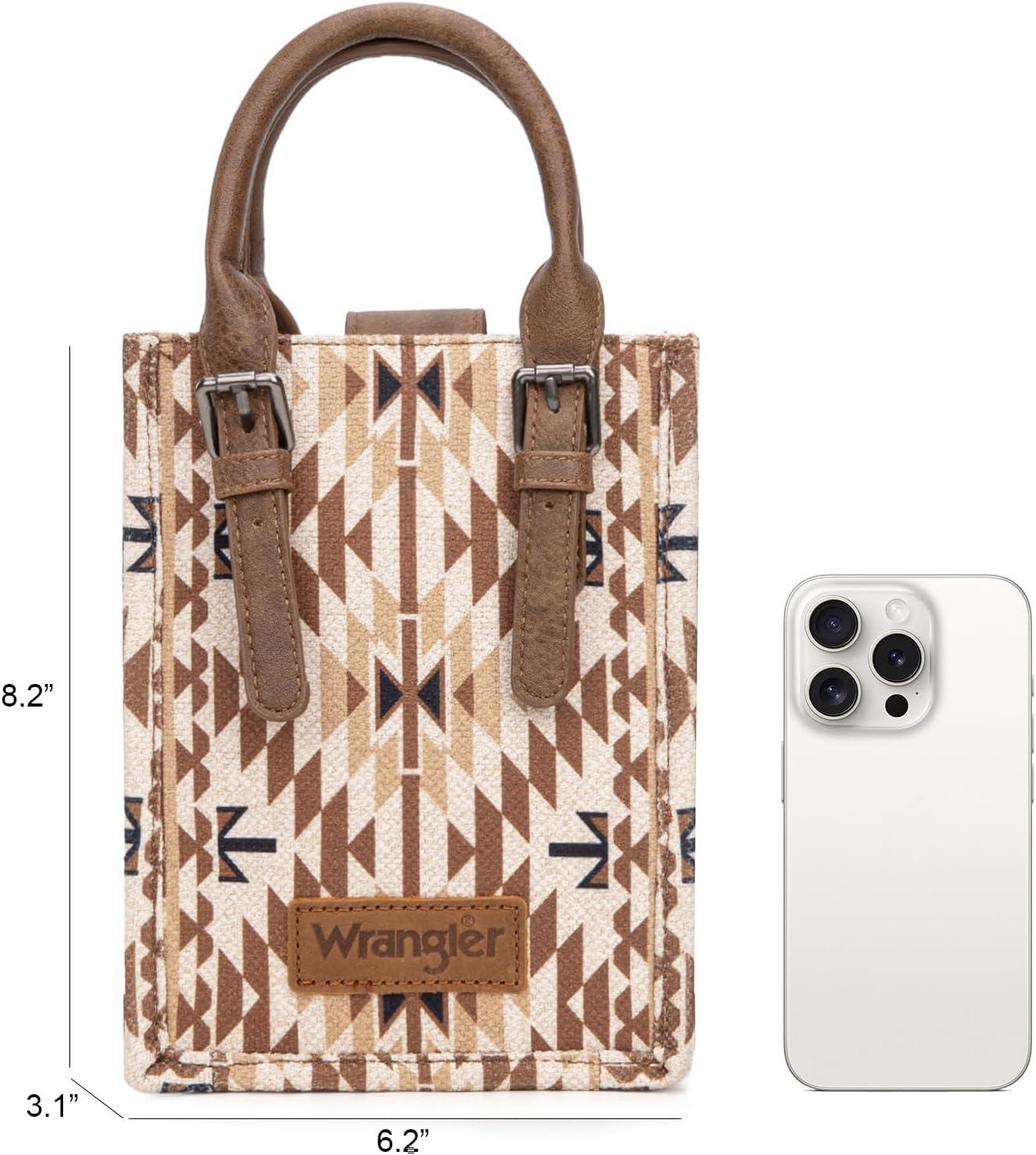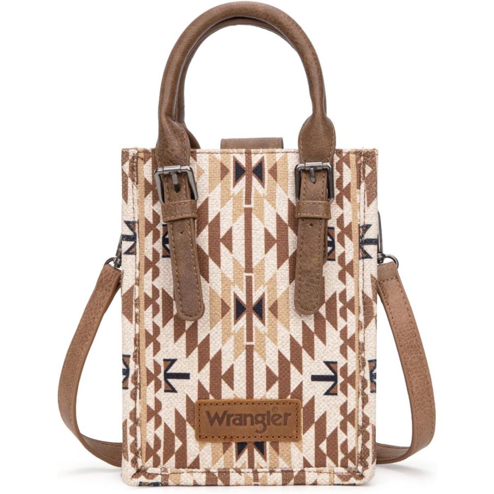 Wrangler Small Crossbody Bags for Women Aztec Cow Print Small Western Purse and Mini Handbag(Angel-coffee)