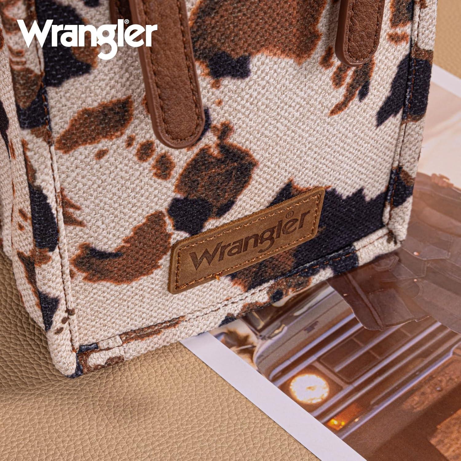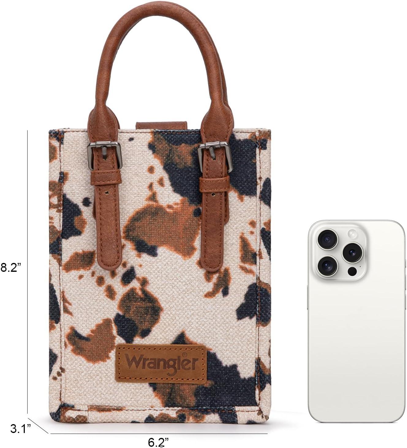 Wrangler Small Crossbody Bags for Women Aztec Cow Print Small Western Purse and Mini Handbag(Angel-cowbrown)