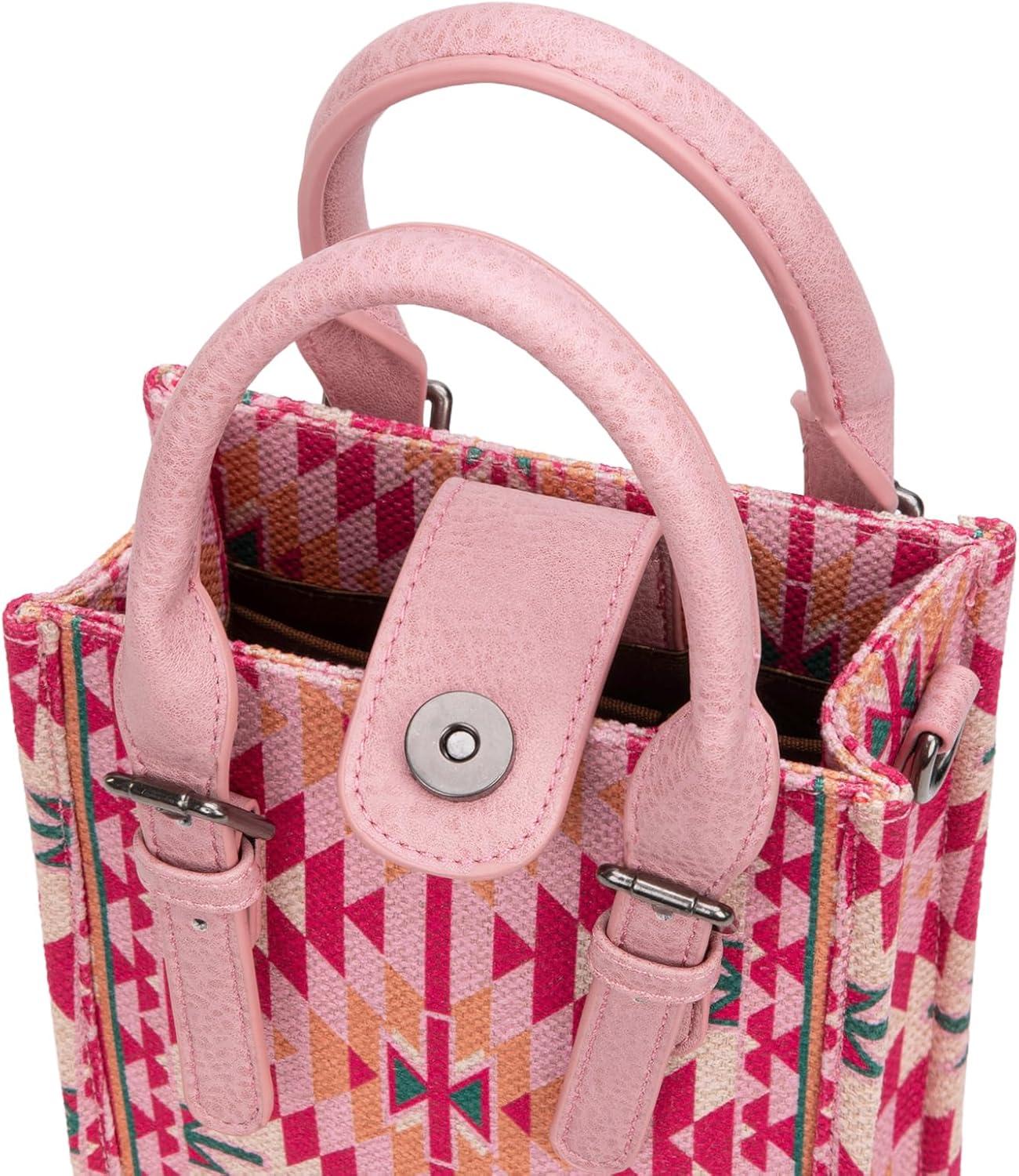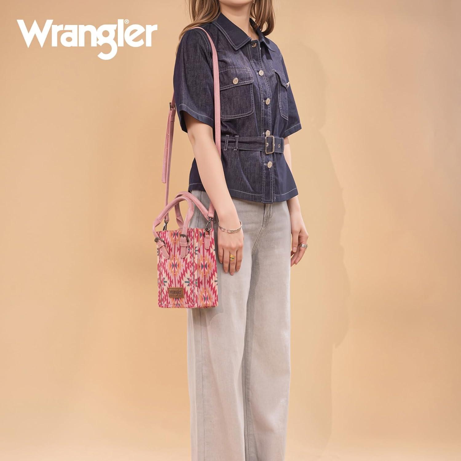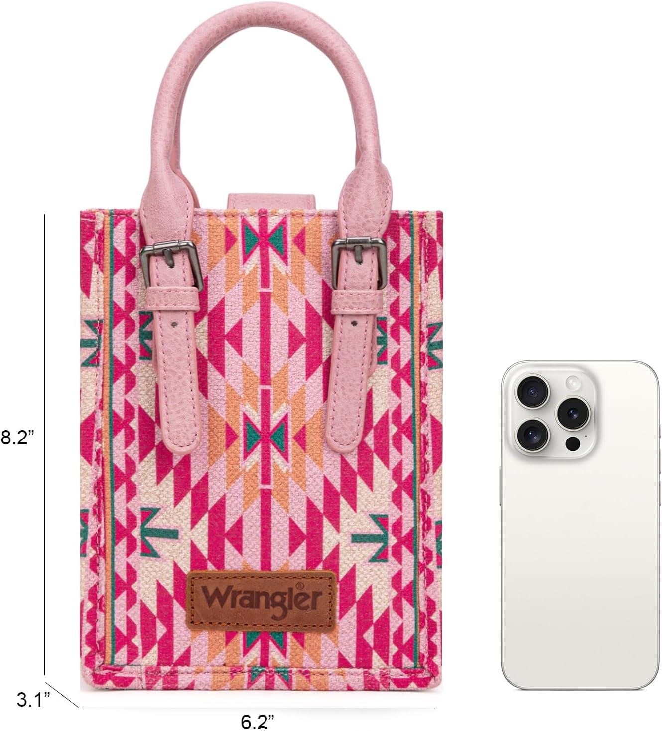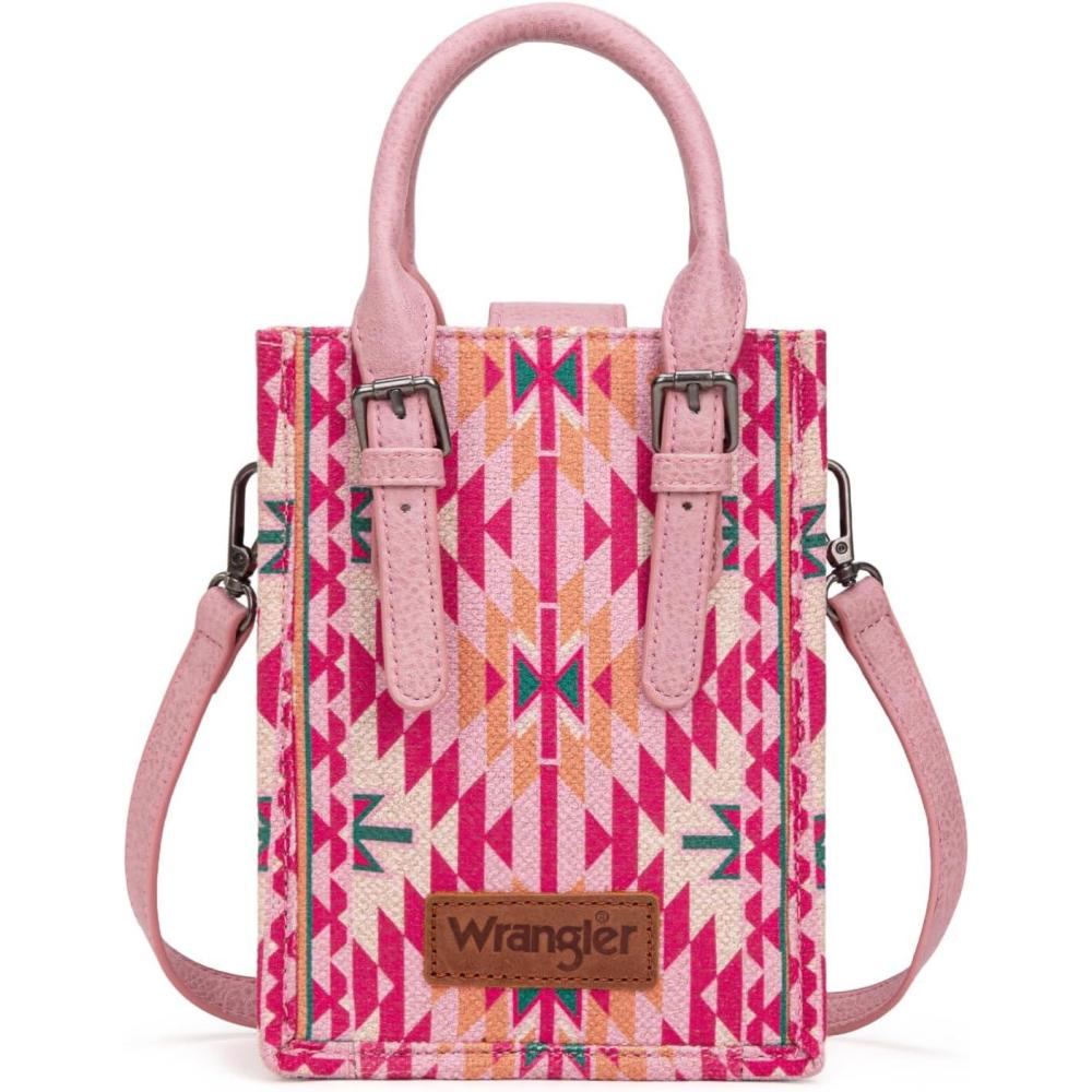 Wrangler Small Crossbody Bags for Women Aztec Cow Print Small Western Purse and Mini Handbag(Angel-pink)