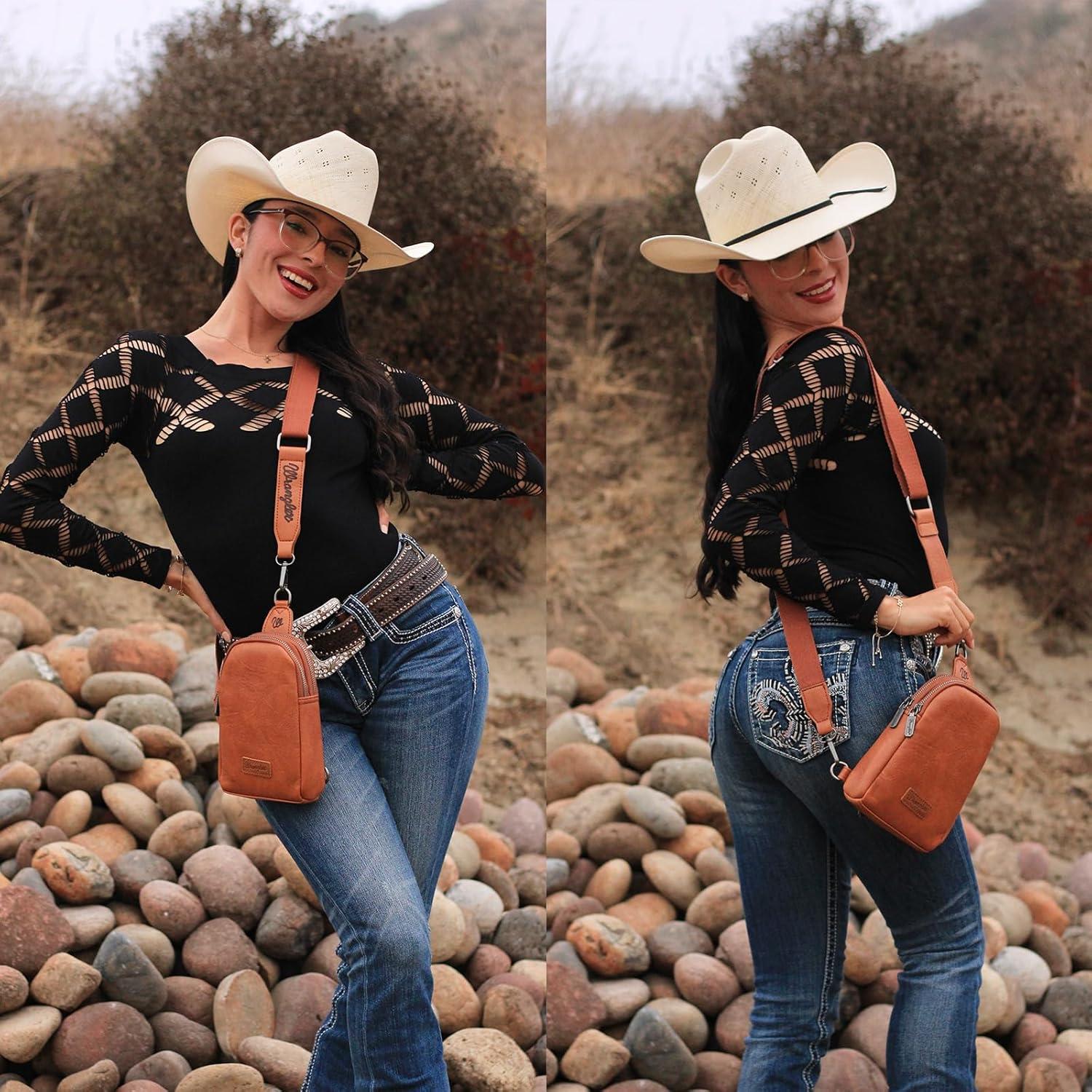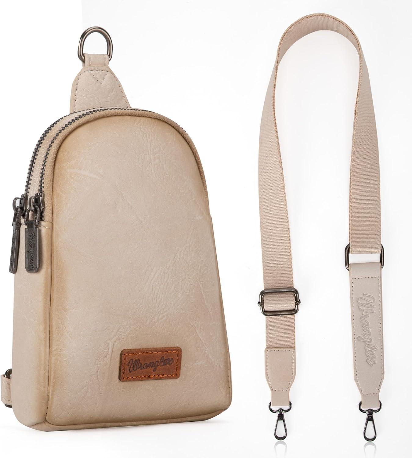 Wrangler Small Crossbody Sling Bags for Women Fanny Packs Chest Bag for Travel Gift(Classic-beige Distressed)