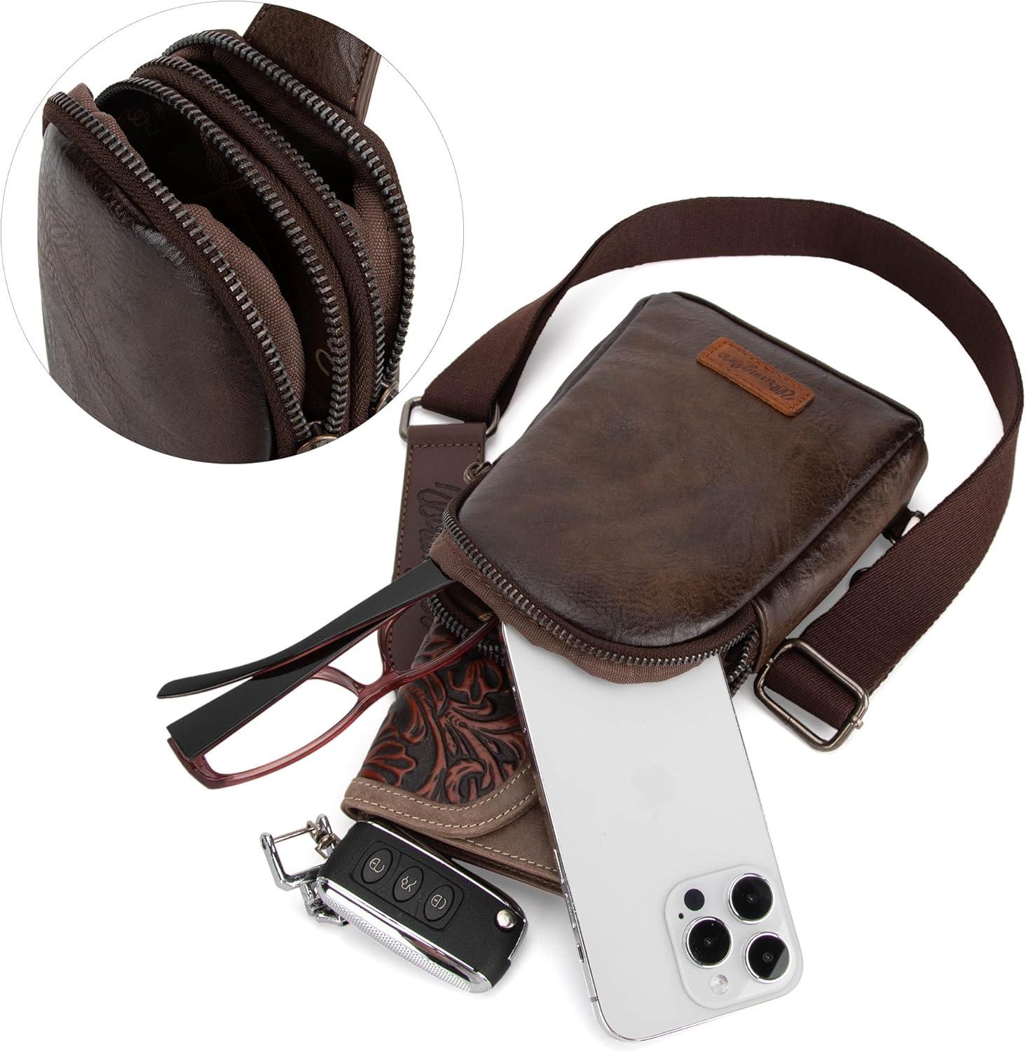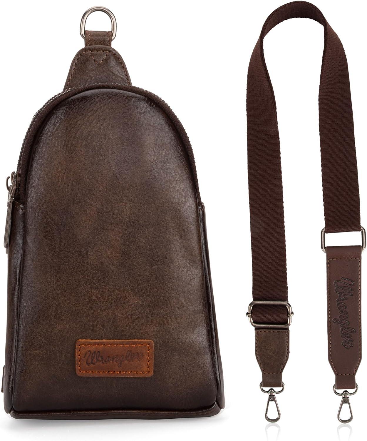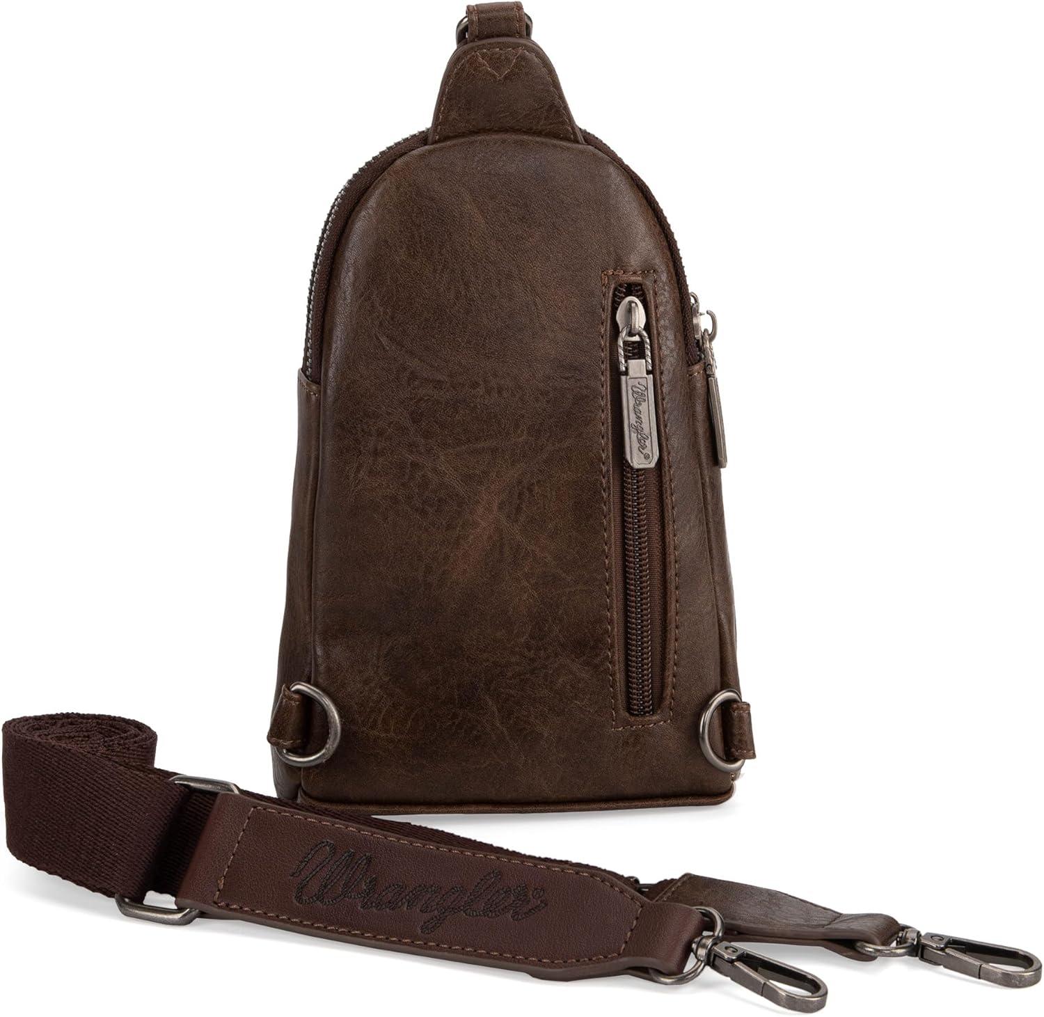 Wrangler Small Crossbody Sling Bags for Women Fanny Packs Chest Bag for Travel Gift(Classic-dark Brown Distressed)