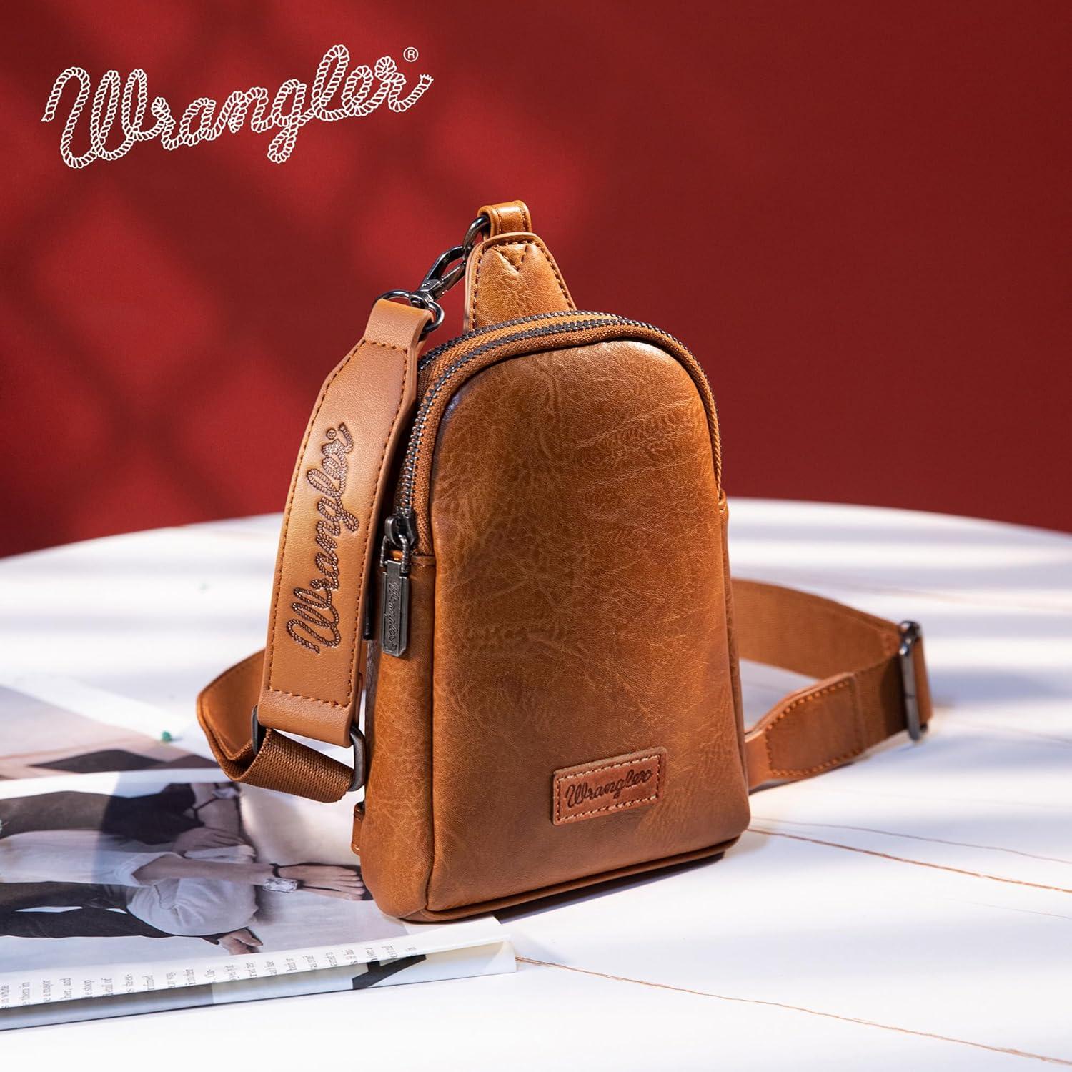 Wrangler Small Crossbody Sling Bags for Women Fanny Packs Chest Bag for Travel Gift(Classic-light Brown)
