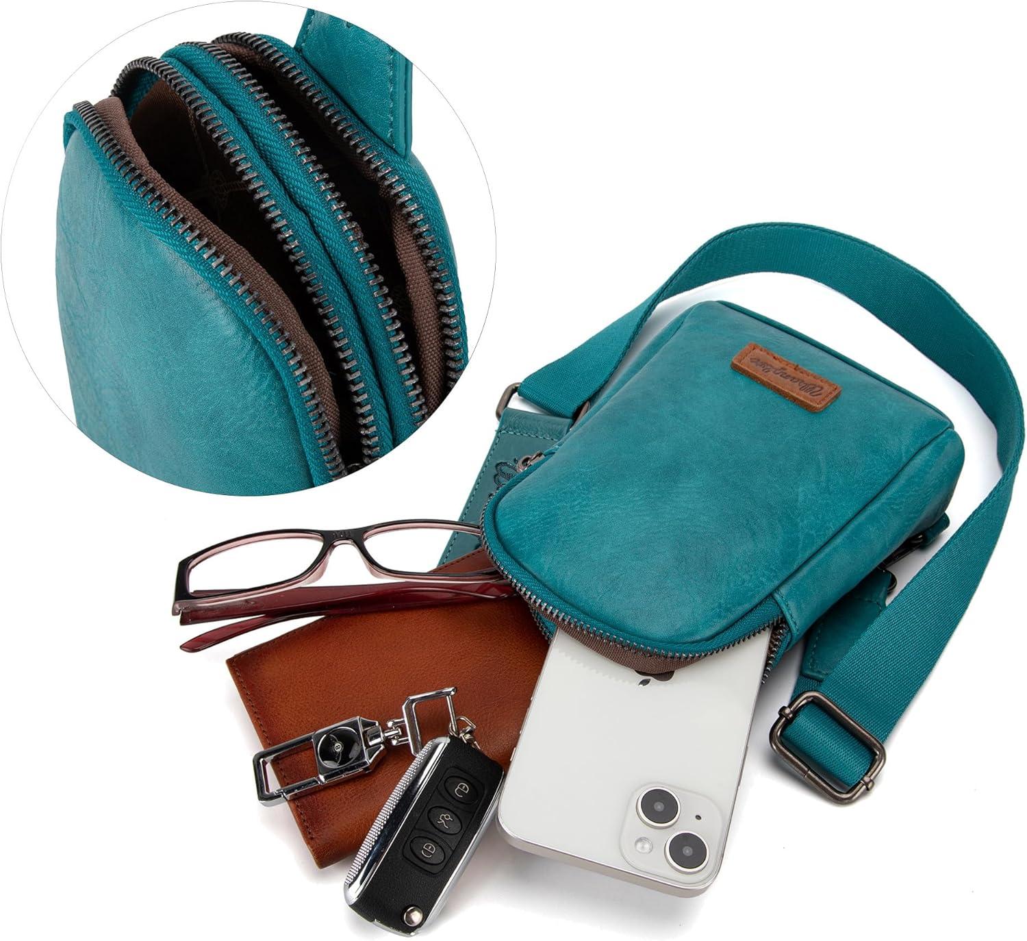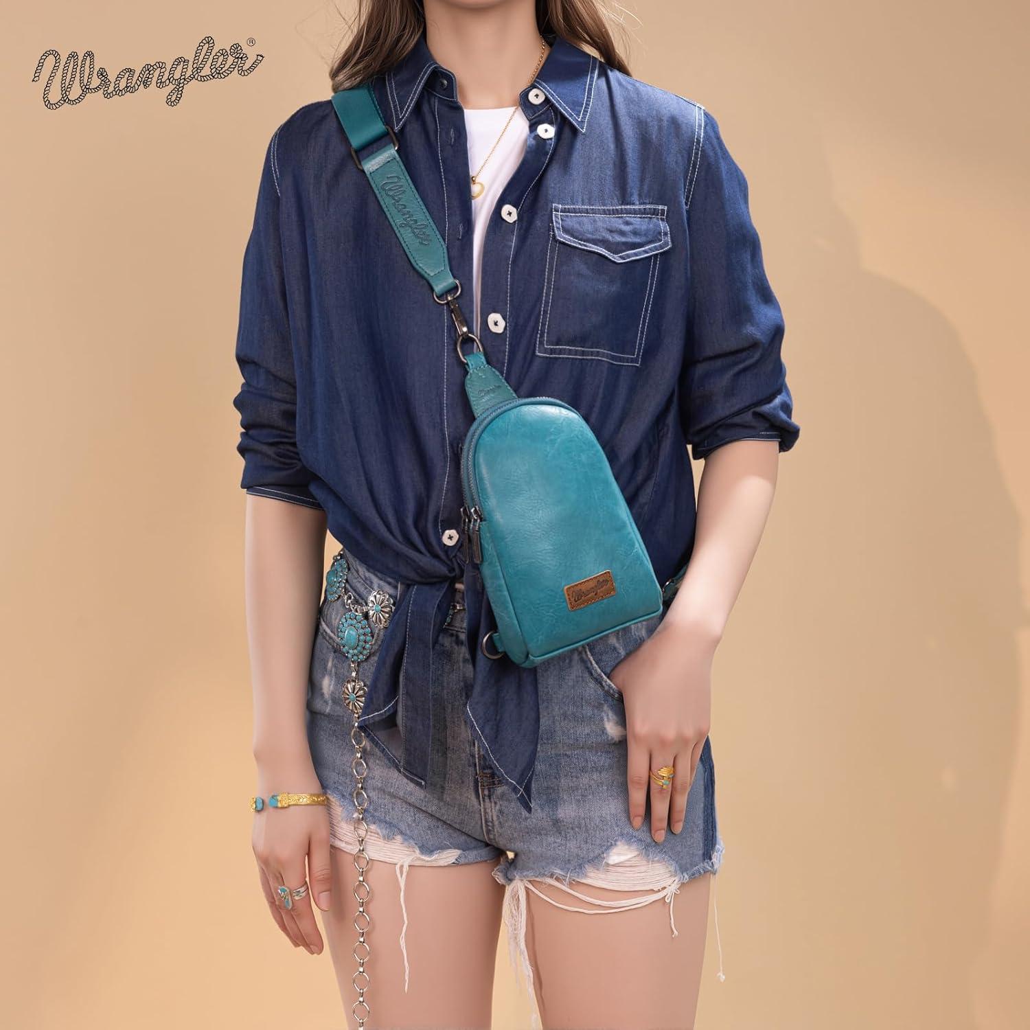 Wrangler Small Crossbody Sling Bags for Women Fanny Packs Chest Bag for Travel Gift(Classic-turquoise)