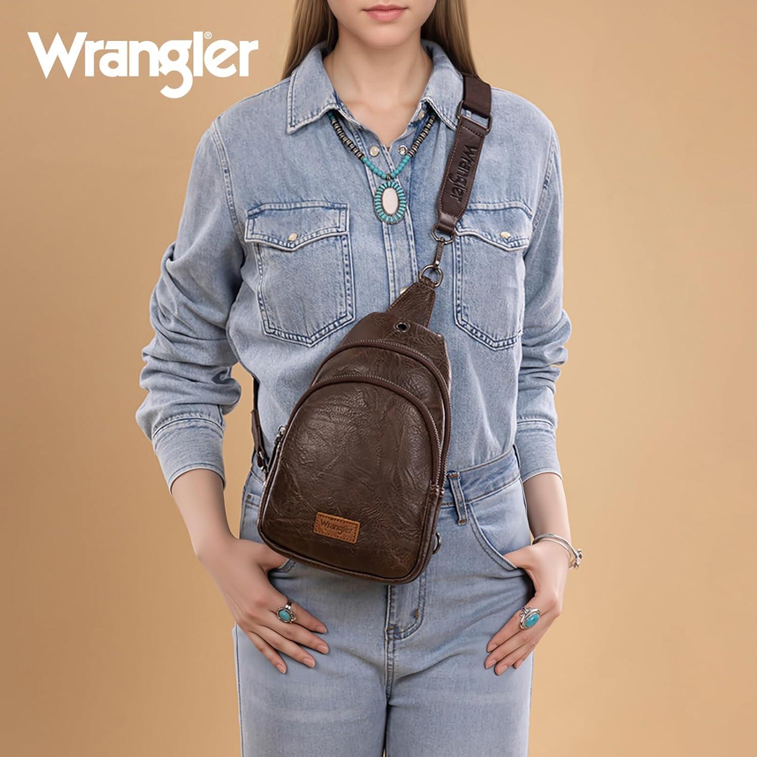 Wrangler Small Crossbody Sling Bags for Women Fanny Packs Chest Bag for Travel Gift(Explorer-dark Brown)