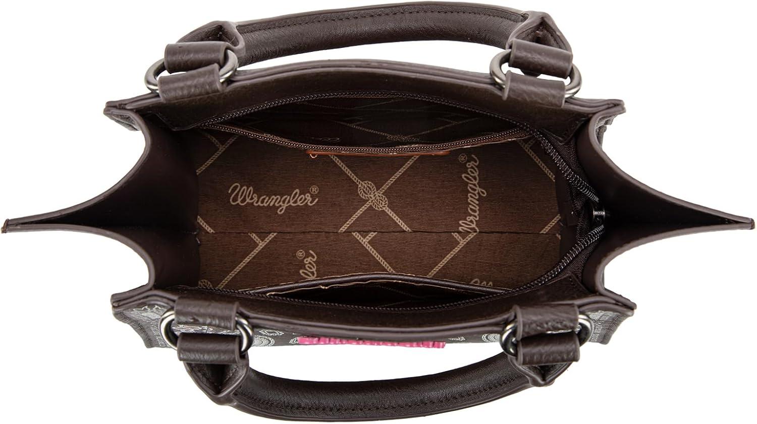 Wrangler Small Tote Purse Cute Women’s Handbags Western Paisley Print Satchel Bags(Paisley-brown)