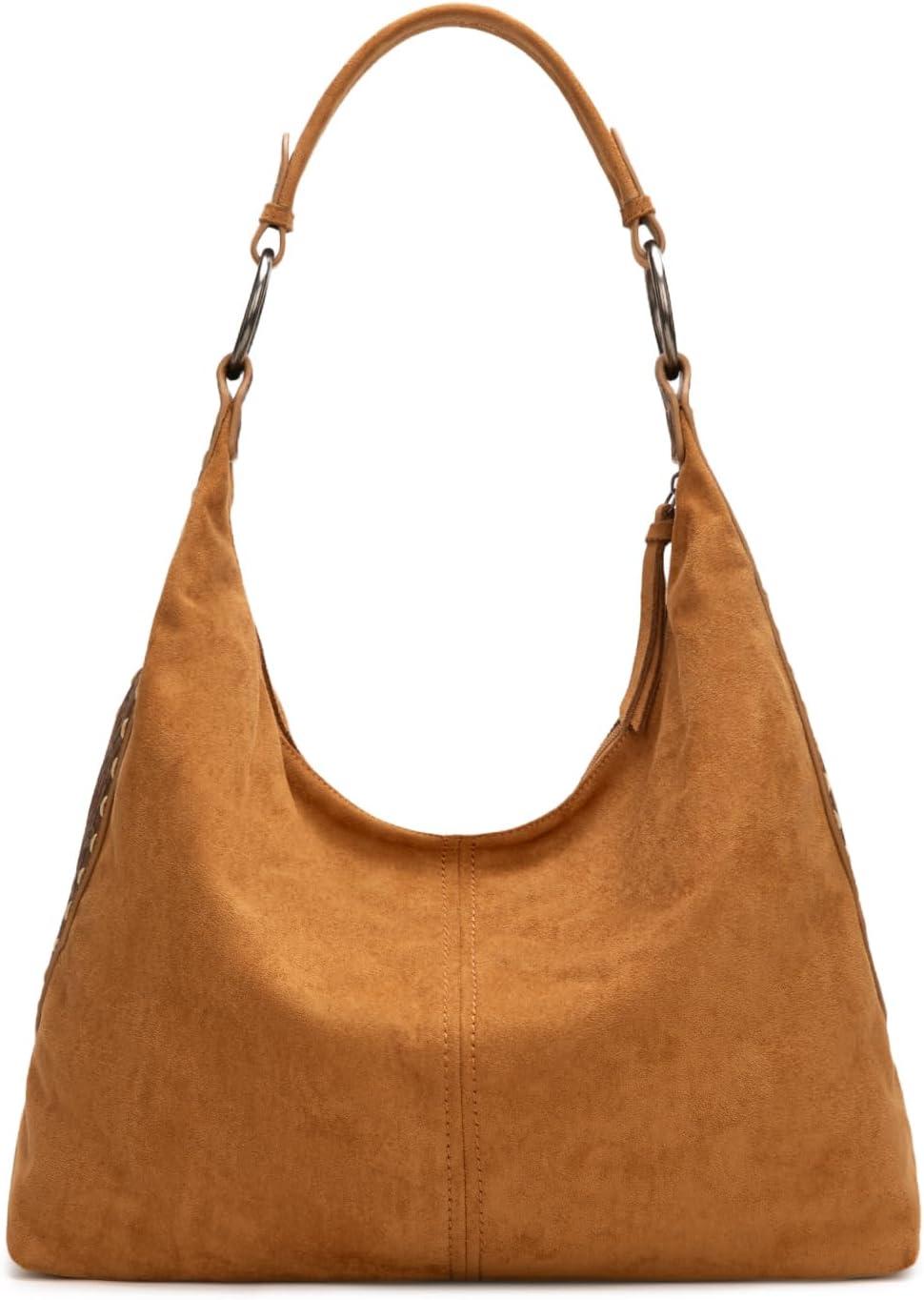 imageWrangler Suede Hobo Purse for Women Embossed Soft Slouchy Shoulder Bag 2Pcs SetDropbrown