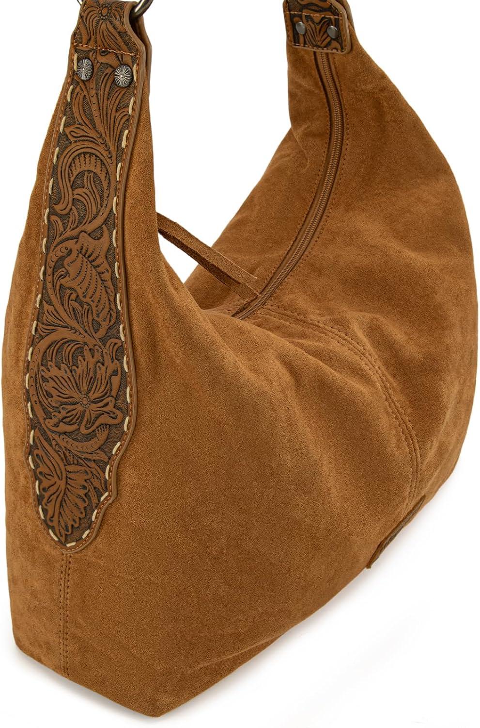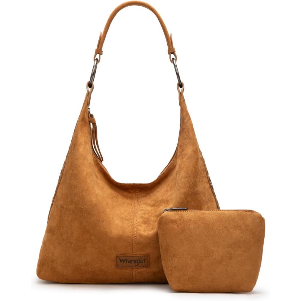 Wrangler Suede Hobo Purse for Women Embossed Soft Slouchy Shoulder Bag 2Pcs Set(Drop-brown)