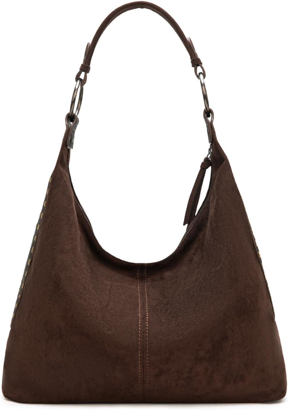 imageWrangler Suede Hobo Purse for Women Embossed Soft Slouchy Shoulder Bag 2Pcs SetDropbrown