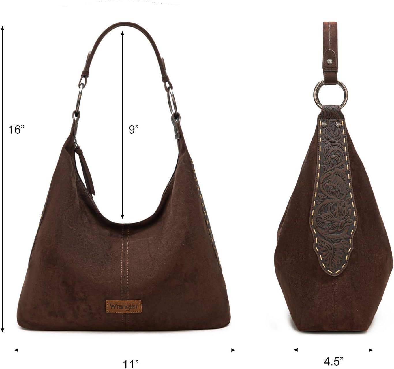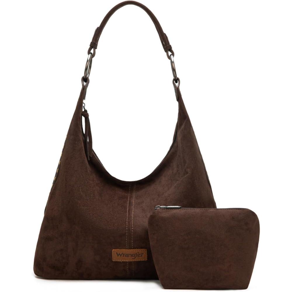 Wrangler Suede Hobo Purse for Women Embossed Soft Slouchy Shoulder Bag 2Pcs Set(Drop-coffee)