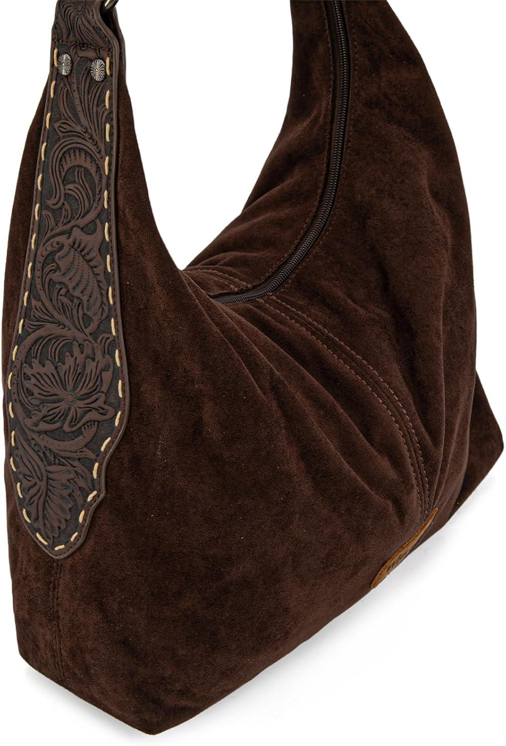 Wrangler Suede Hobo Purse for Women Embossed Soft Slouchy Shoulder Bag 2Pcs Set(Drop-brown)