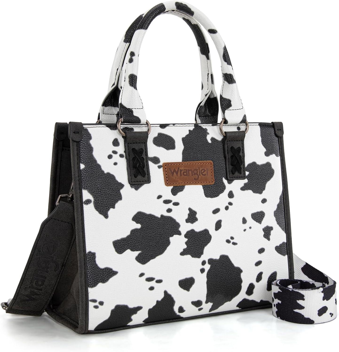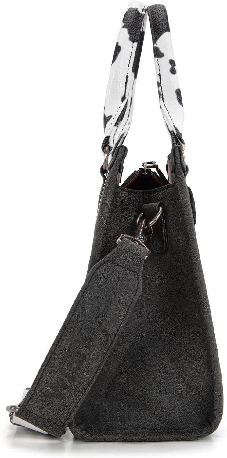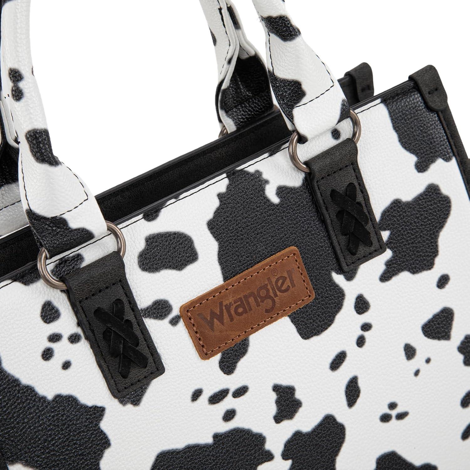 Wrangler Tote Bag for Women Western Retro Purse Top Handle Handbags with Aztec Strap(Angel Cow Black)