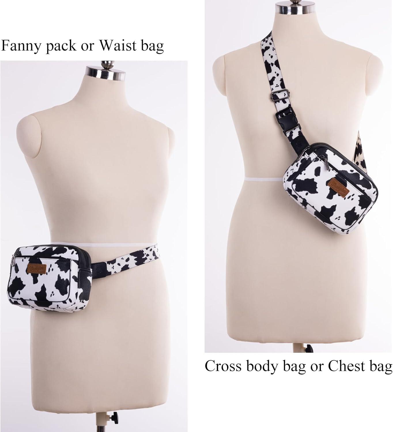 imageWrangler Waist Pack for Women Cow Print Fanny Pack Mens Crossbody Belt Bag With Guitar Strap BlackBlack