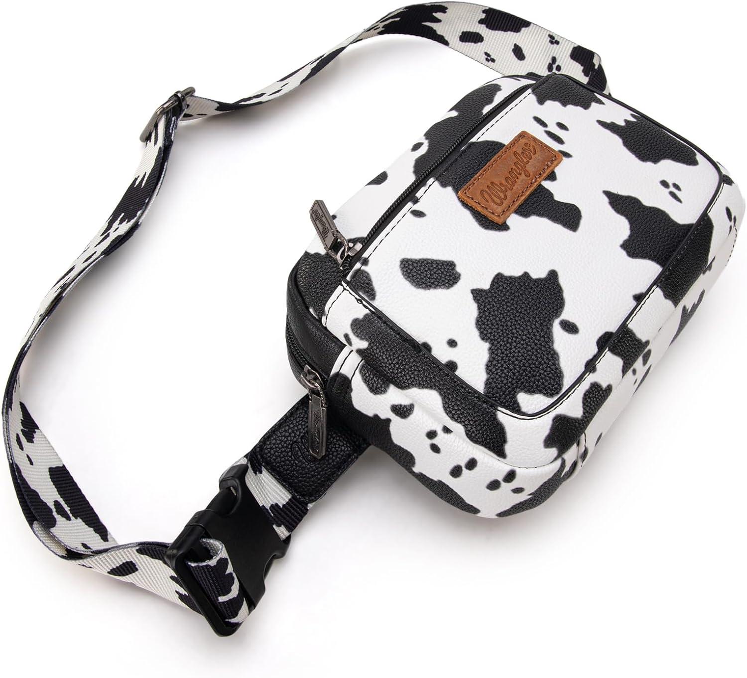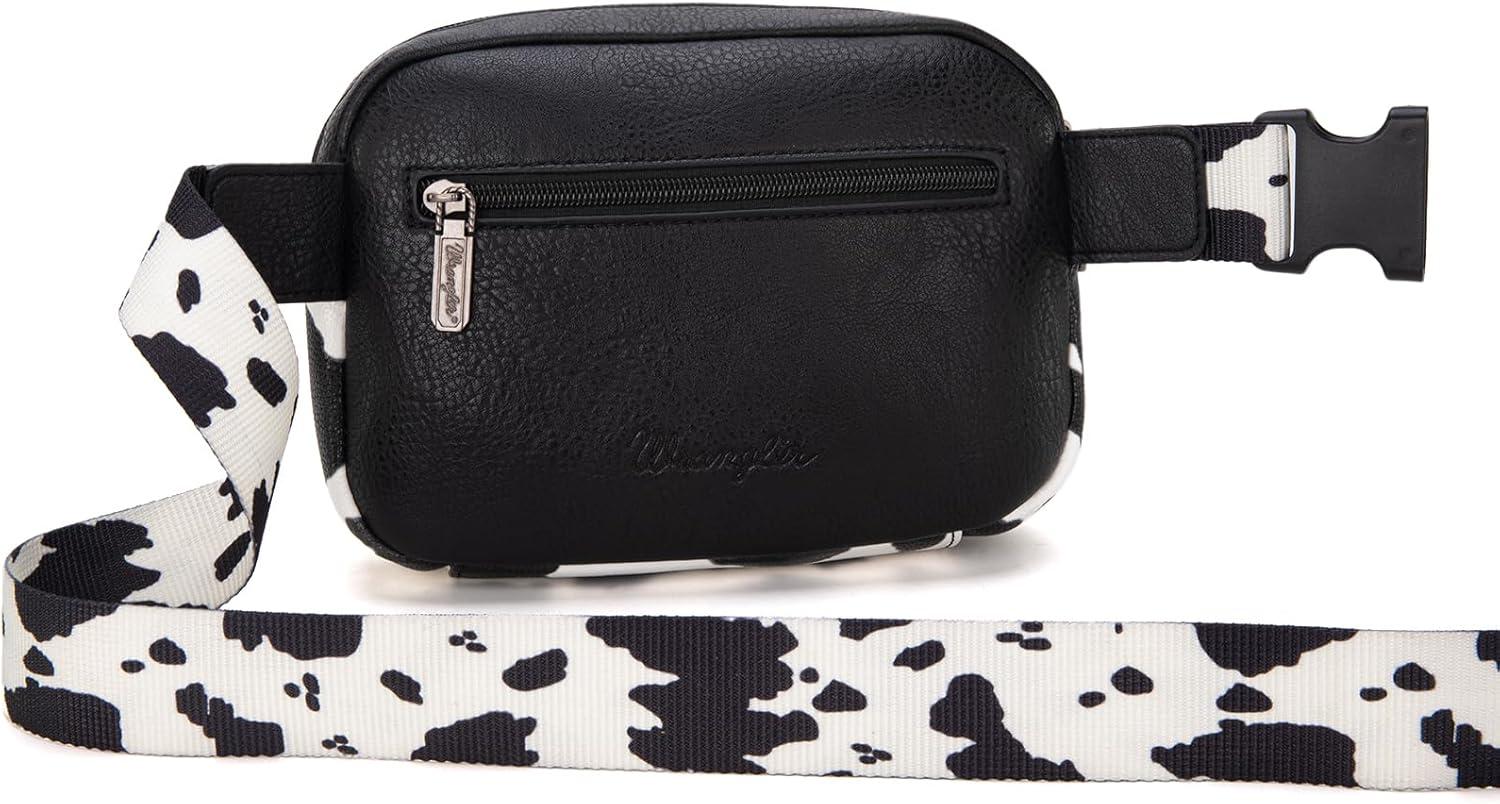 Wrangler Waist Pack for Women Cow Print Fanny Pack Men’s Crossbody Belt Bag With Guitar Strap, Black(Black)