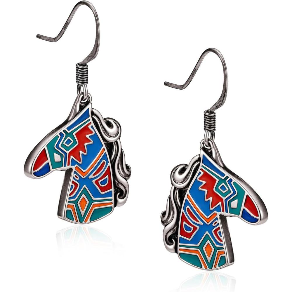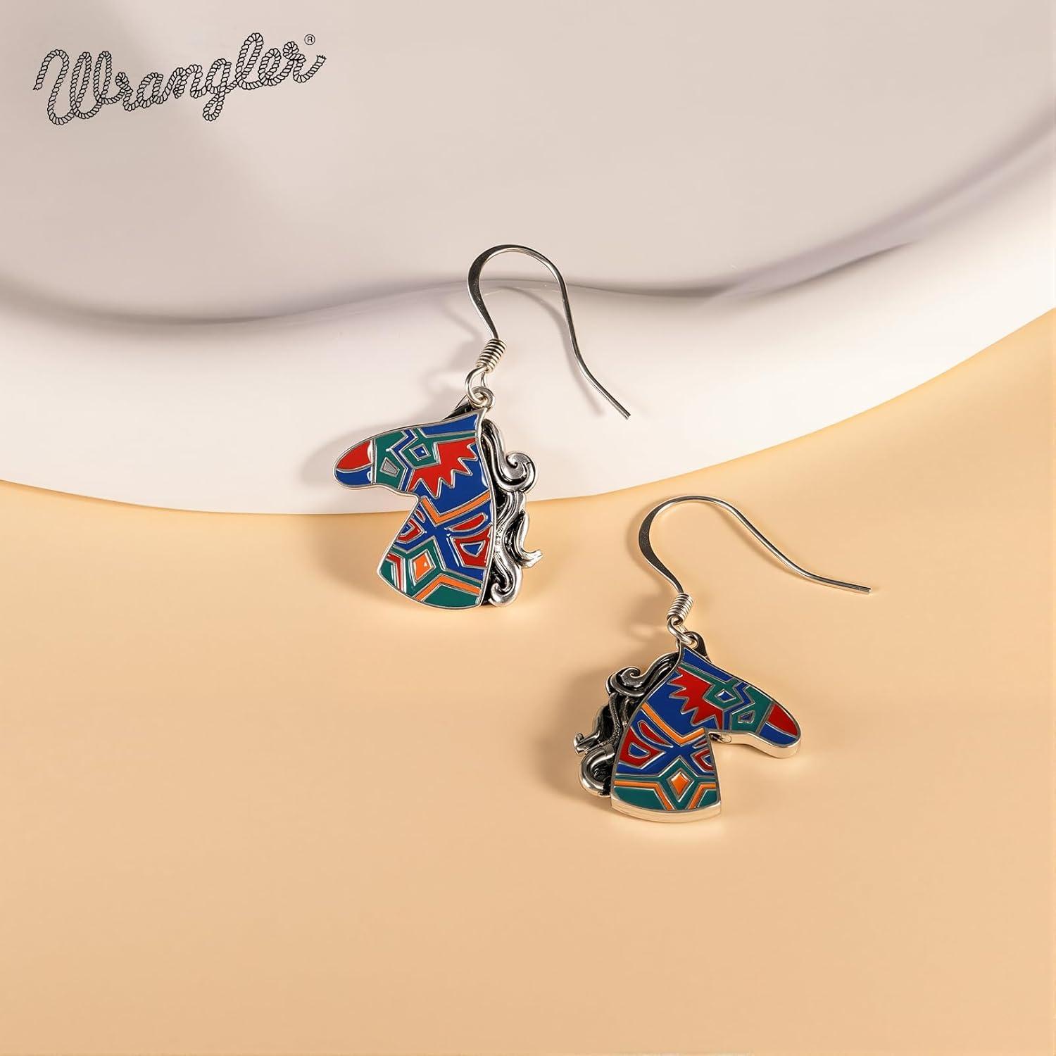 Wrangler Western Earrings Concho Dangling Retro Lightweight Jewelry for Women Cowgirl(D-Horse Silver)