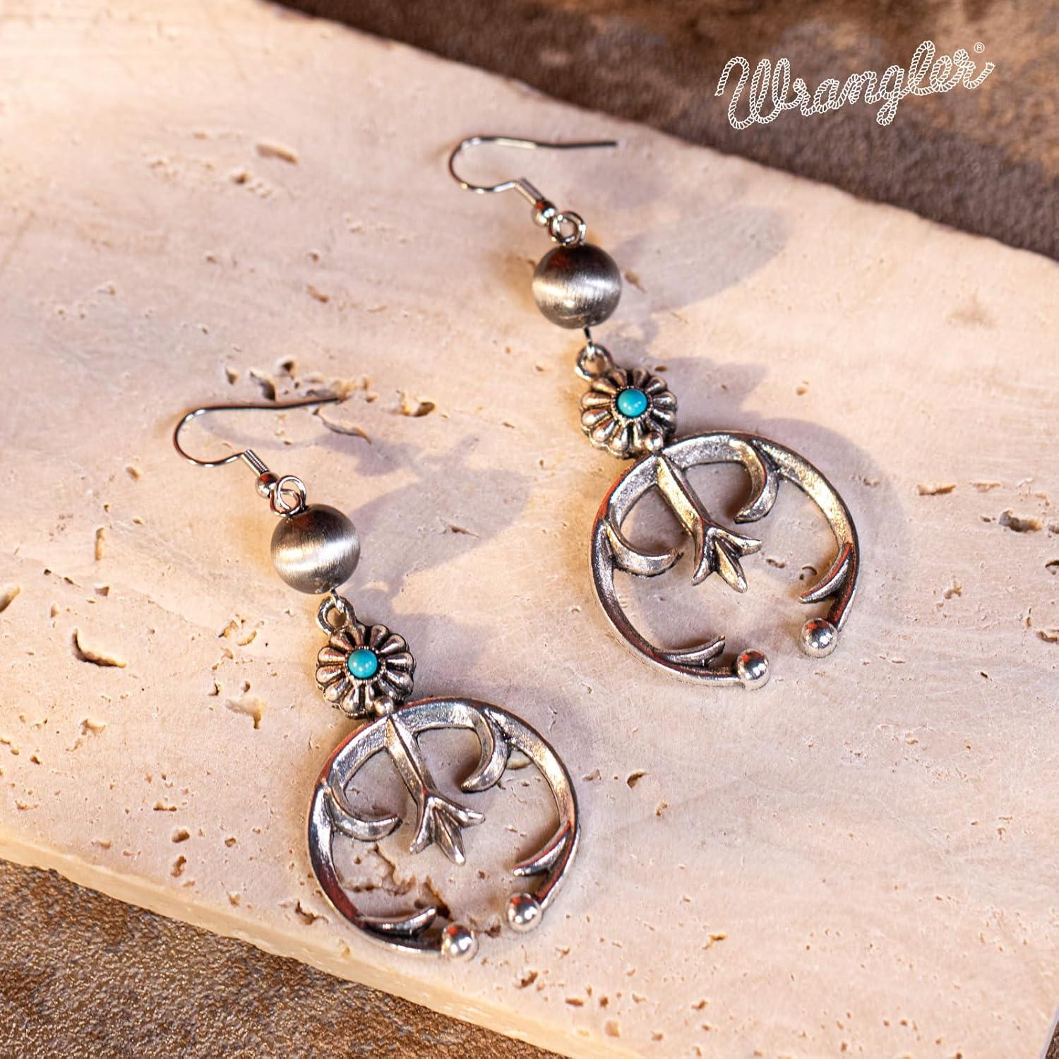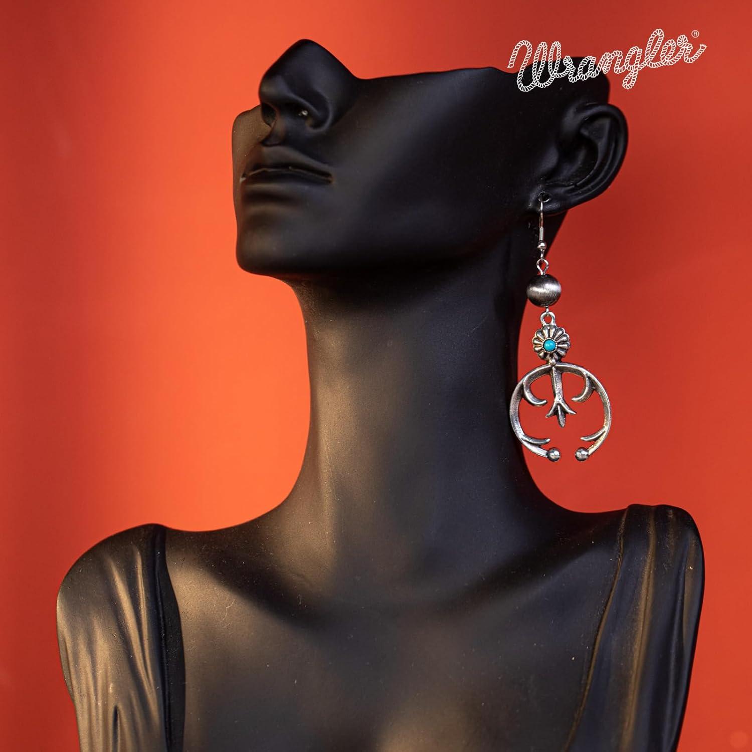 Wrangler Western Earrings Concho Dangling Retro Lightweight Jewelry for Women Cowgirl(G-Turquoise)