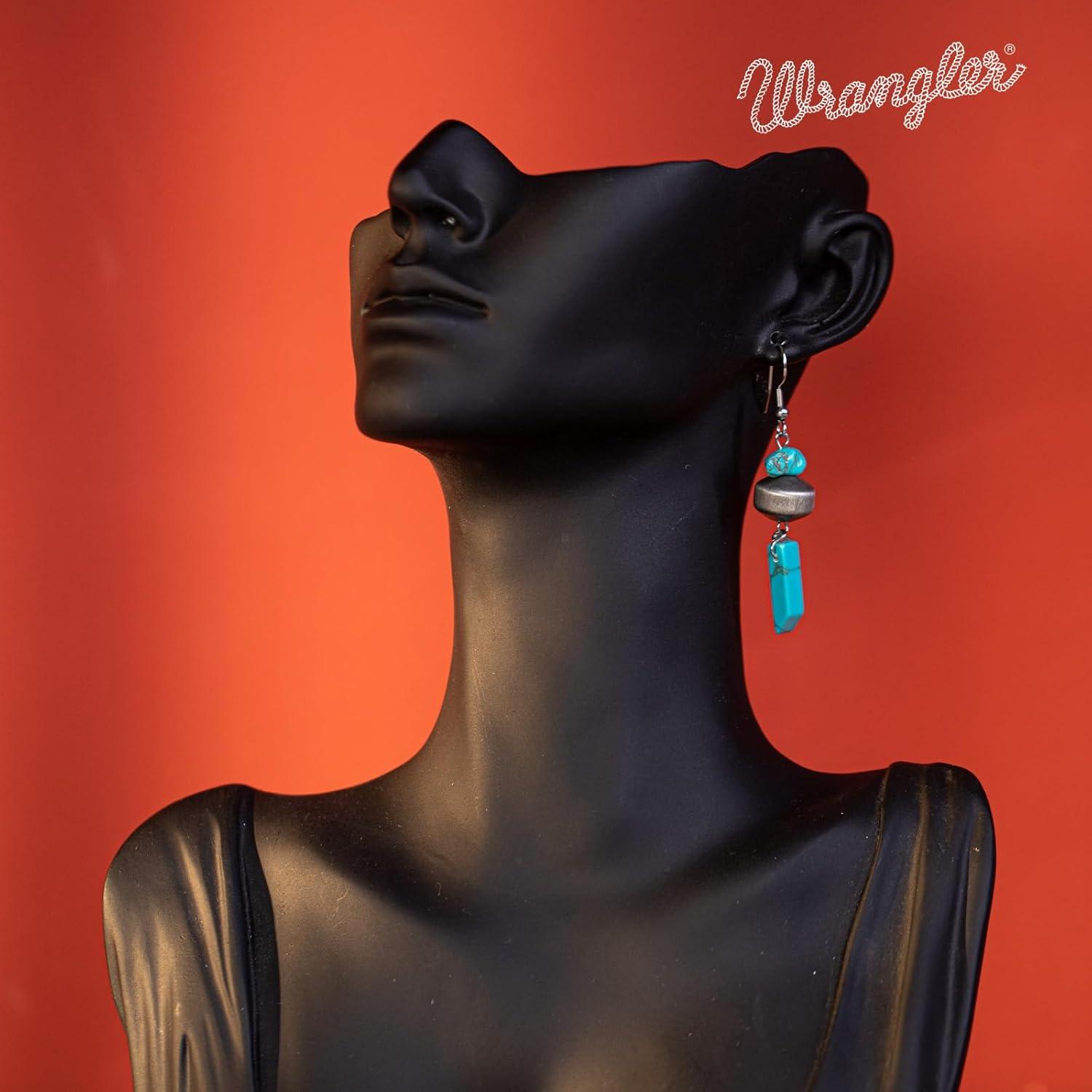 Wrangler Western Earrings Concho Dangling Retro Lightweight Jewelry for Women Cowgirl(H-Turquoise)