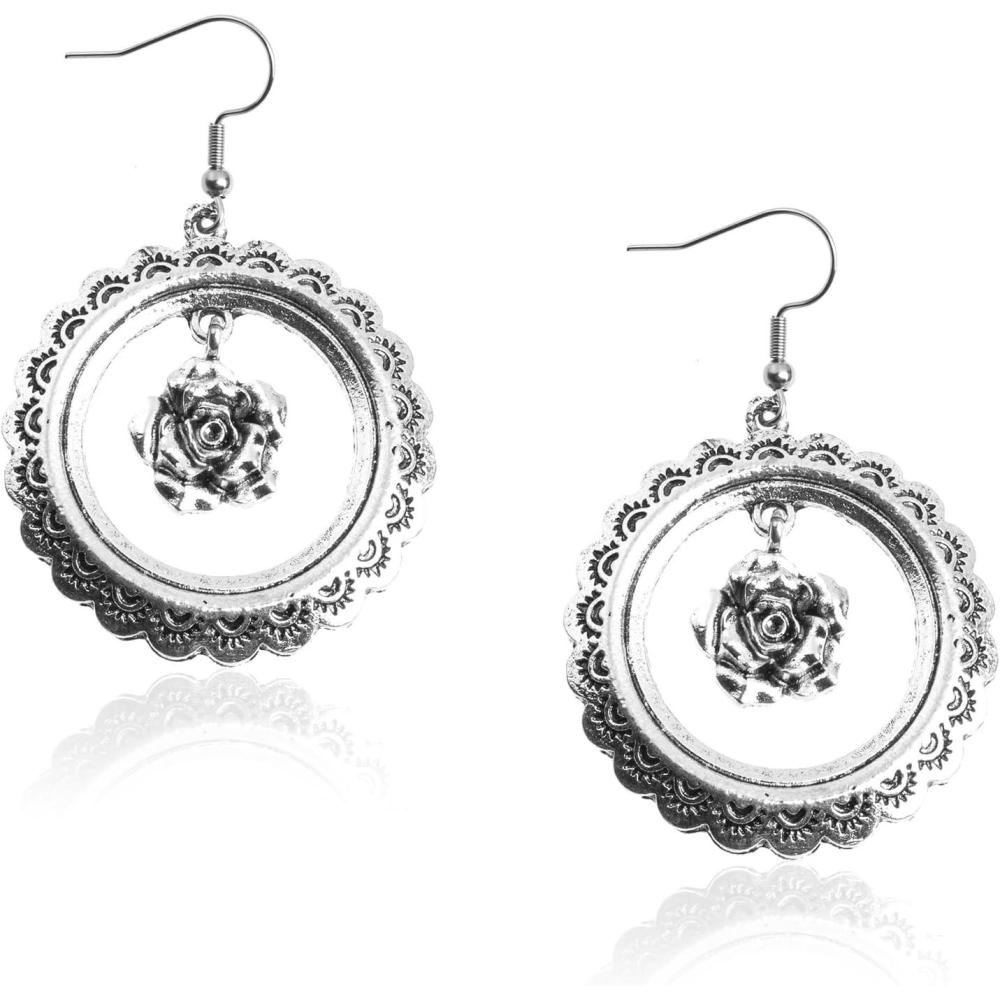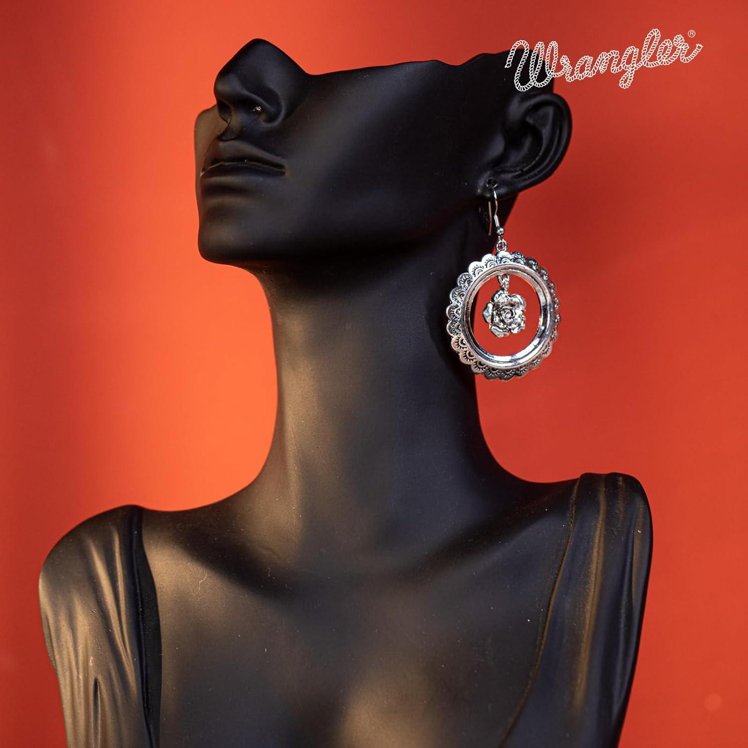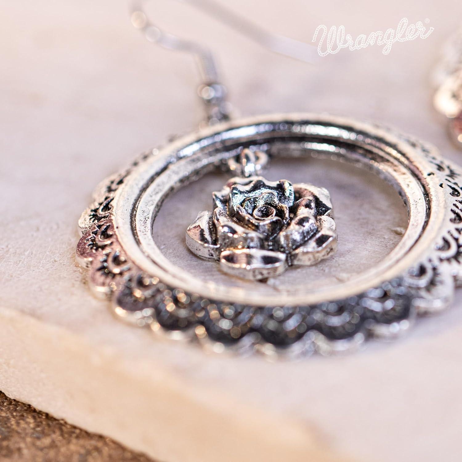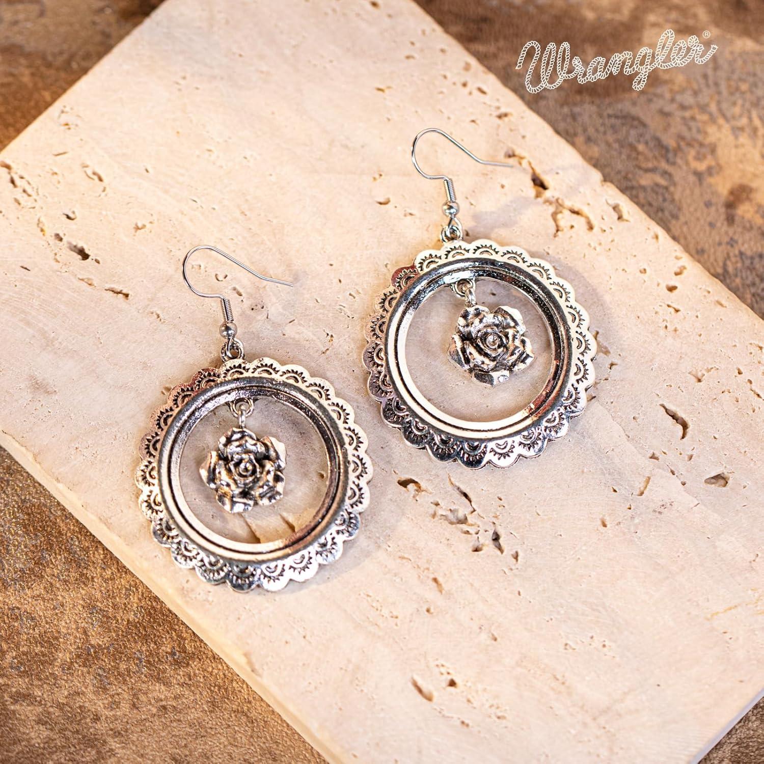 Wrangler Western Earrings Concho Dangling Retro Lightweight Jewelry for Women Cowgirl(L-antique silver)