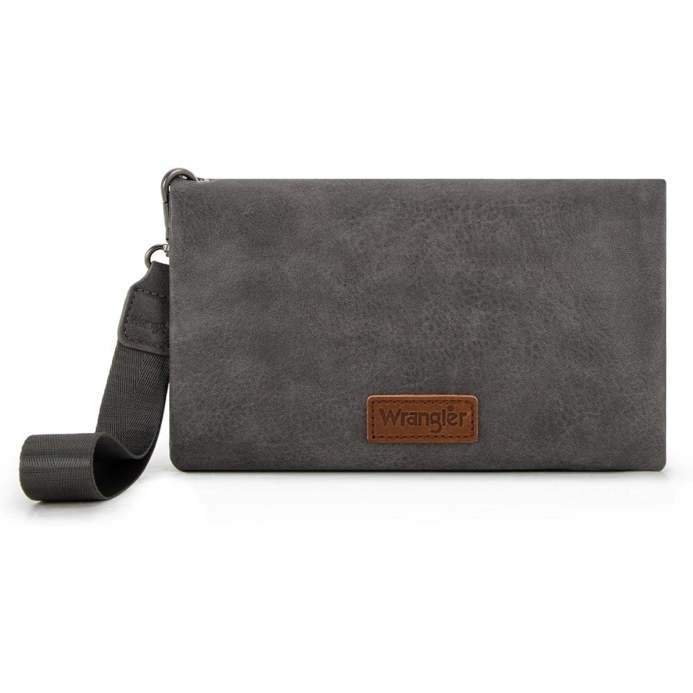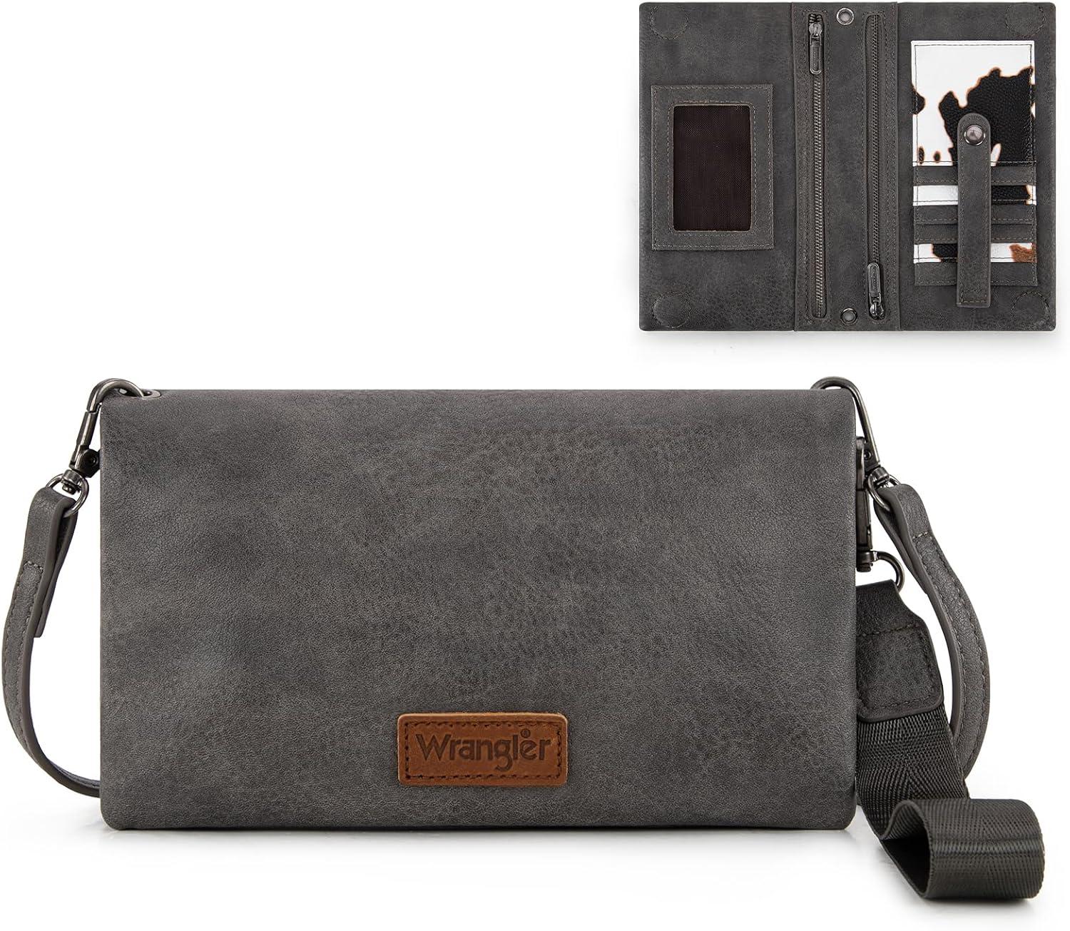Wrangler Wristlet Wallet RFID Blocking Bifold Clutch Purse Women Credit Card Holder Cow Print with Crossbody Strap(B-gray)