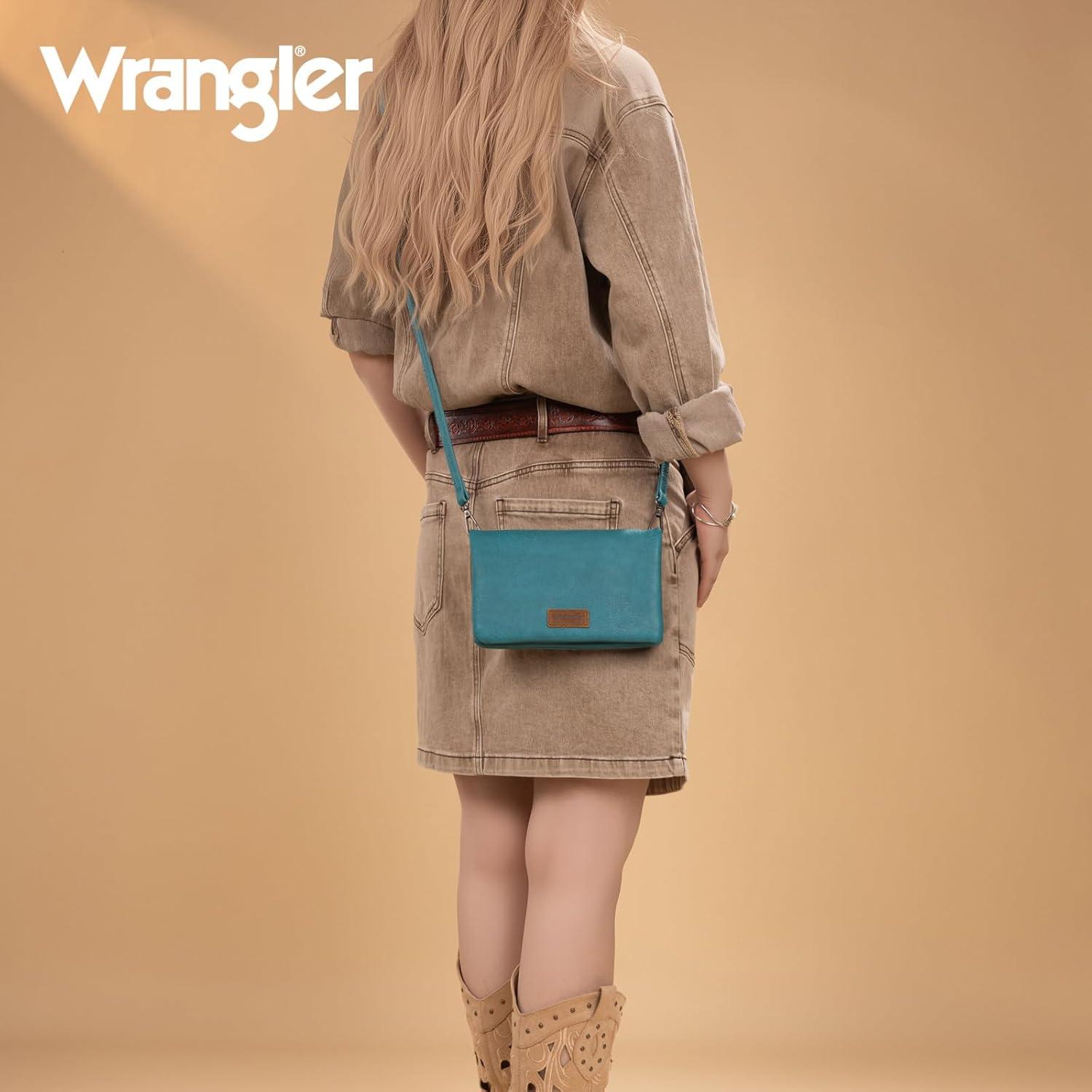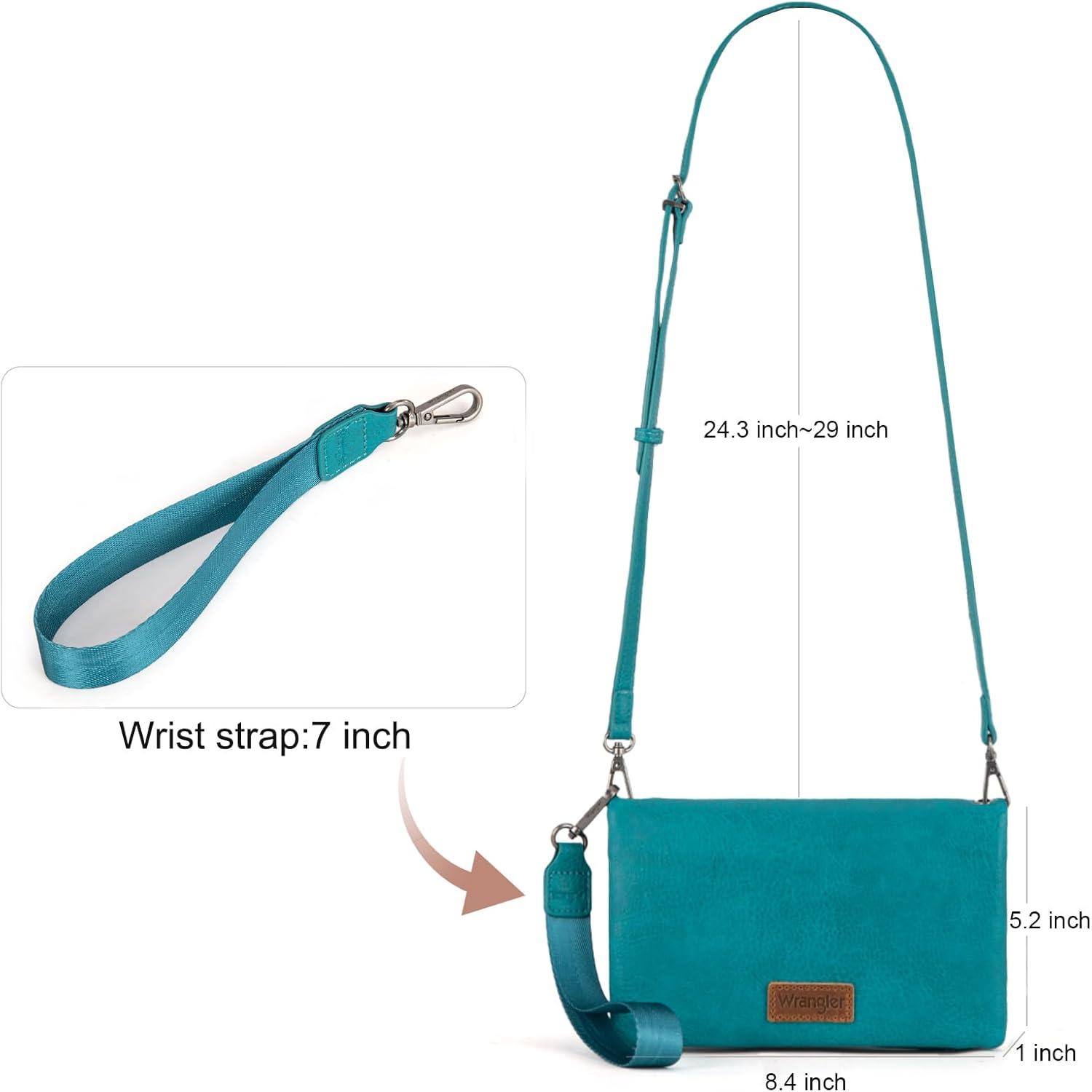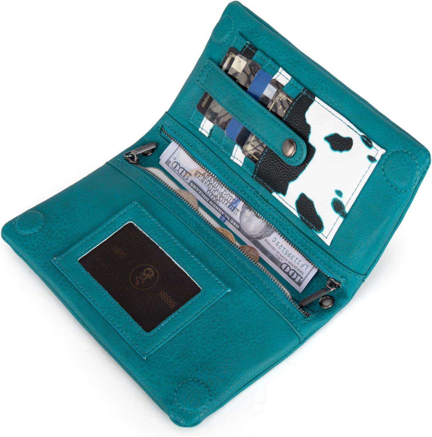 Wrangler Wristlet Wallet RFID Blocking Bifold Clutch Purse Women Credit Card Holder Cow Print with Crossbody Strap(B-turquoise)