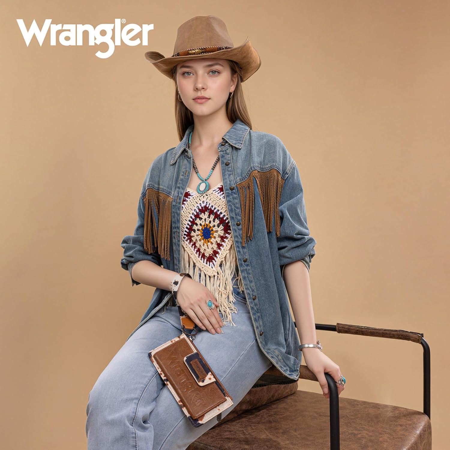 Wrangler Wristlet Wallets for Women Western Clutch Purse Rfid Wallet Womens(Artist-cow Tan)