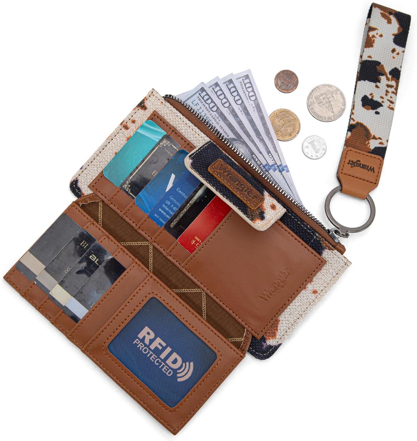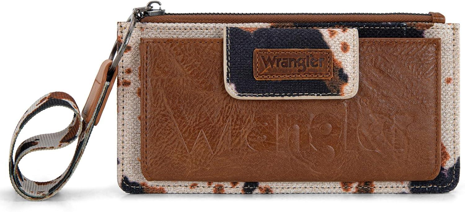Wrangler Wristlet Wallets for Women Western Clutch Purse Rfid Wallet Womens(Artist-cow Brown)