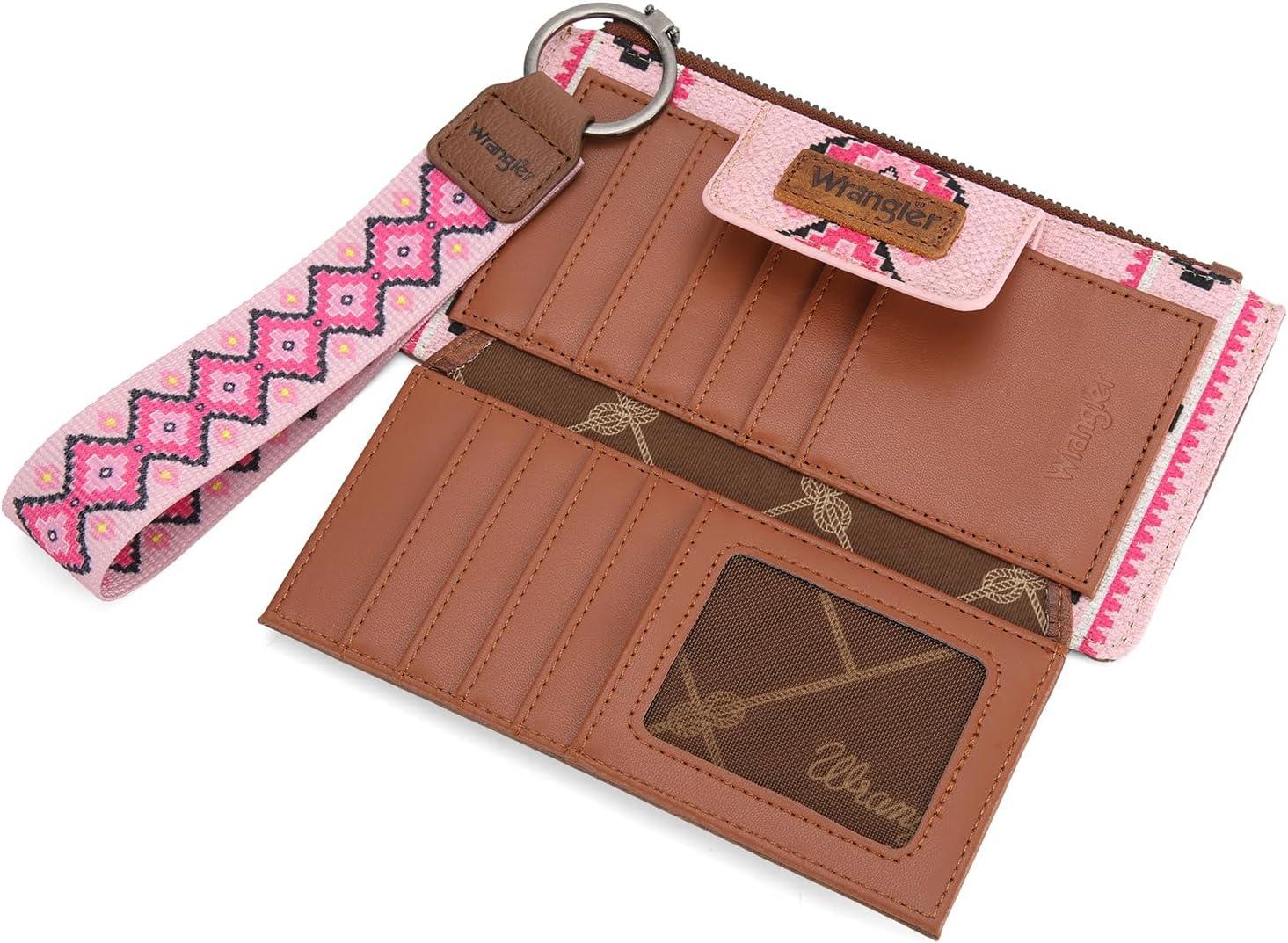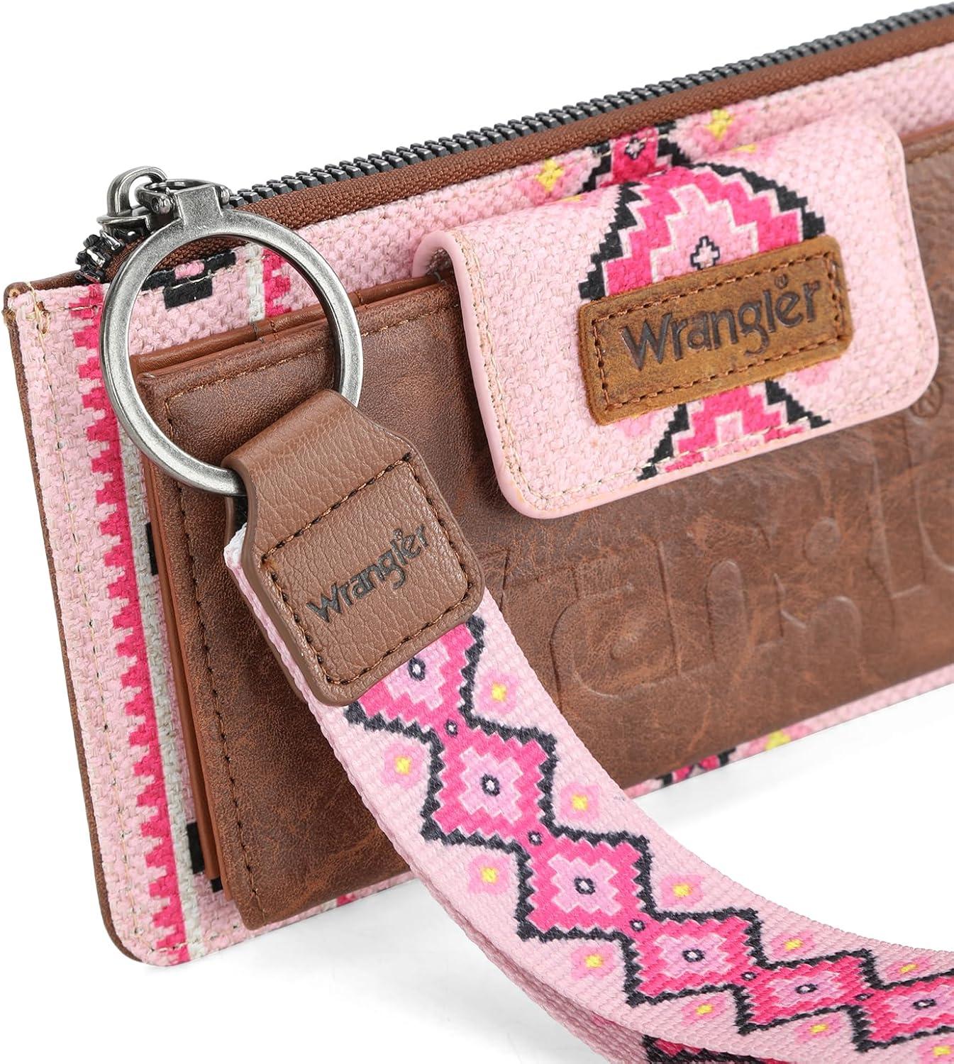 Wrangler Wristlet Wallets for Women Western Clutch Purse Rfid Wallet Womens(Artist-light Pink)