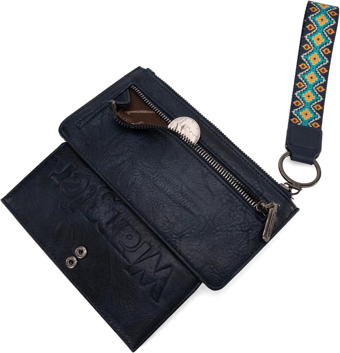 Wrangler Wristlet Wallets for Women Western Clutch Purse Rfid Wallet Womens(Artist-navy Blue)