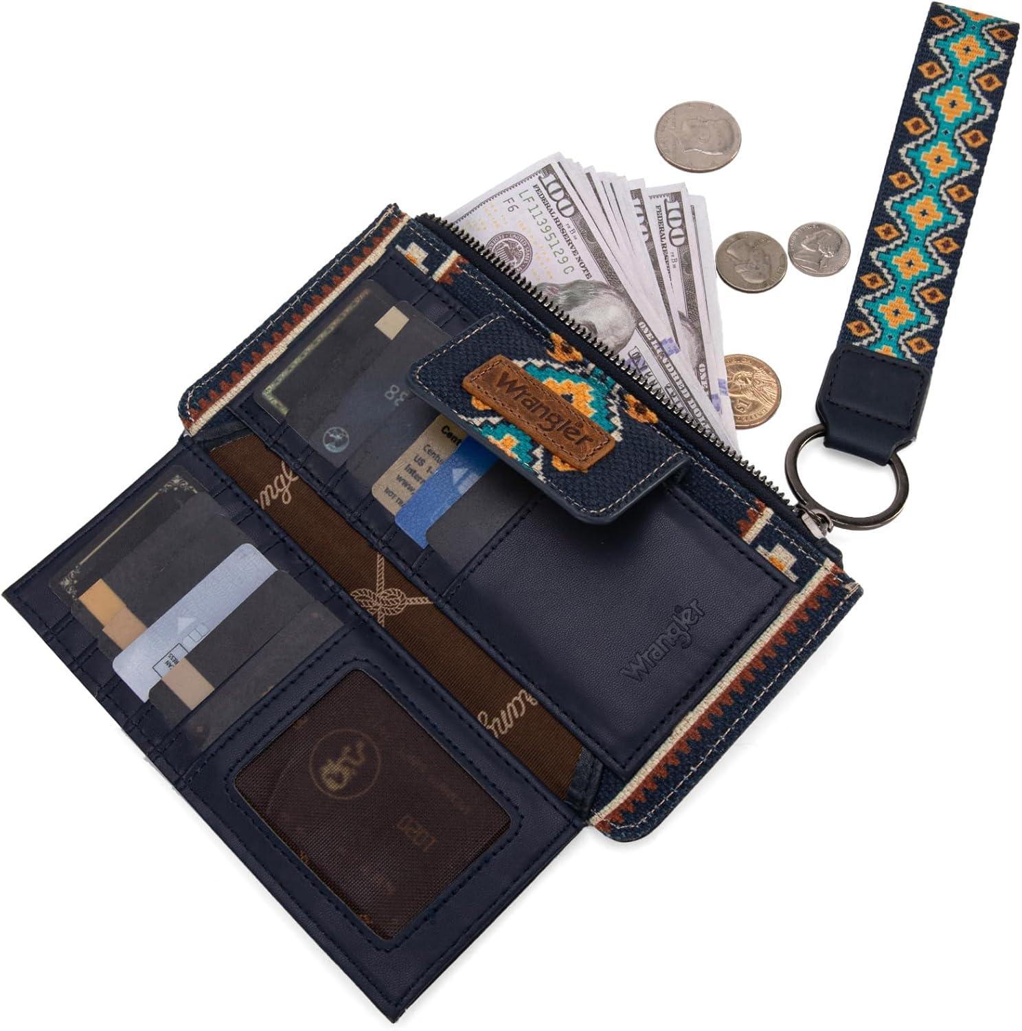 Wrangler Wristlet Wallets for Women Western Clutch Purse Rfid Wallet Womens(Artist-navy)