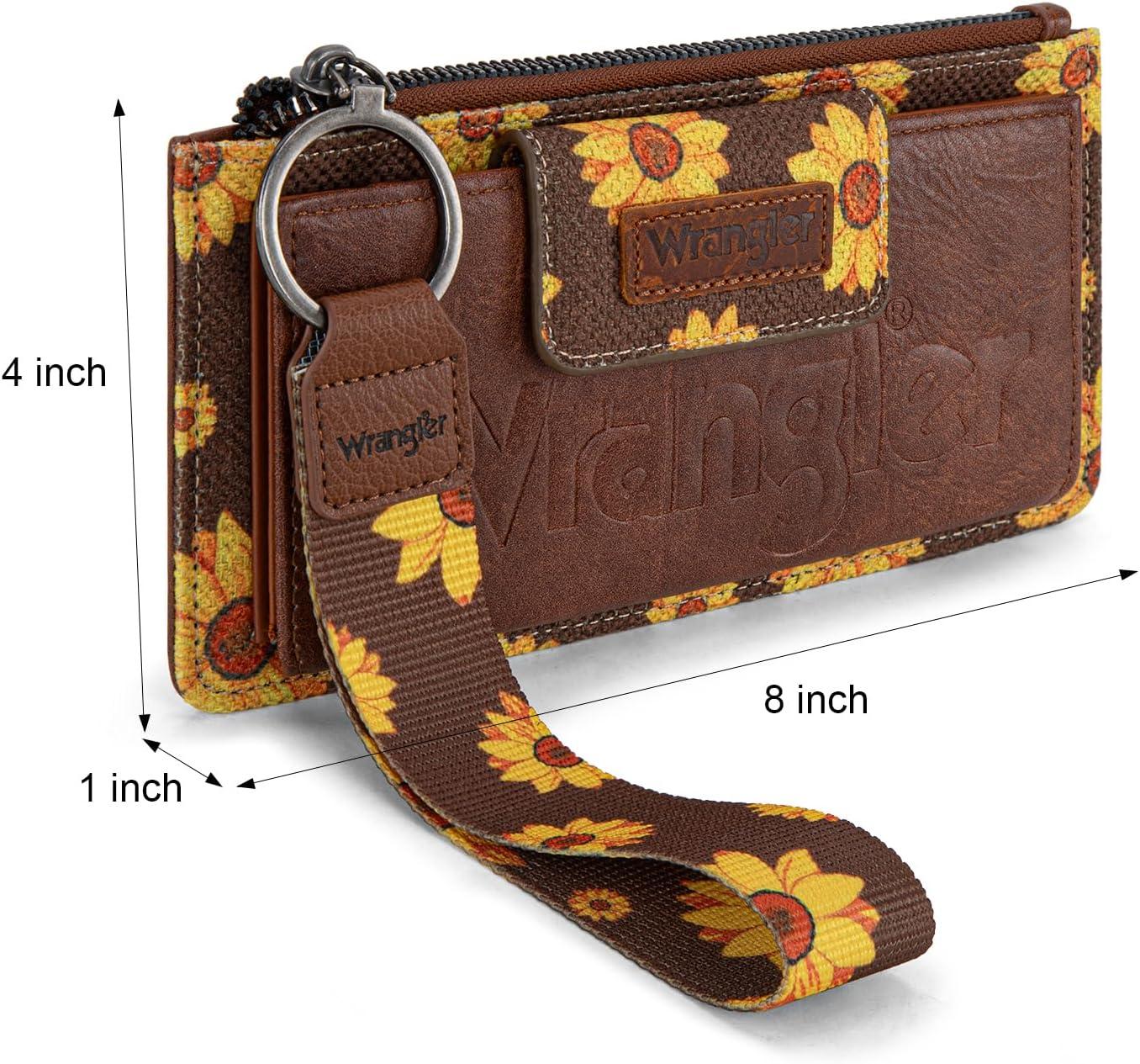 Get your hands on our exclusive Wrangler Wristlet Wallets for Women Western Clutch Purse Rfid Wallet Womens(Artist-sunflower Brown) collection, now at a discounted price.