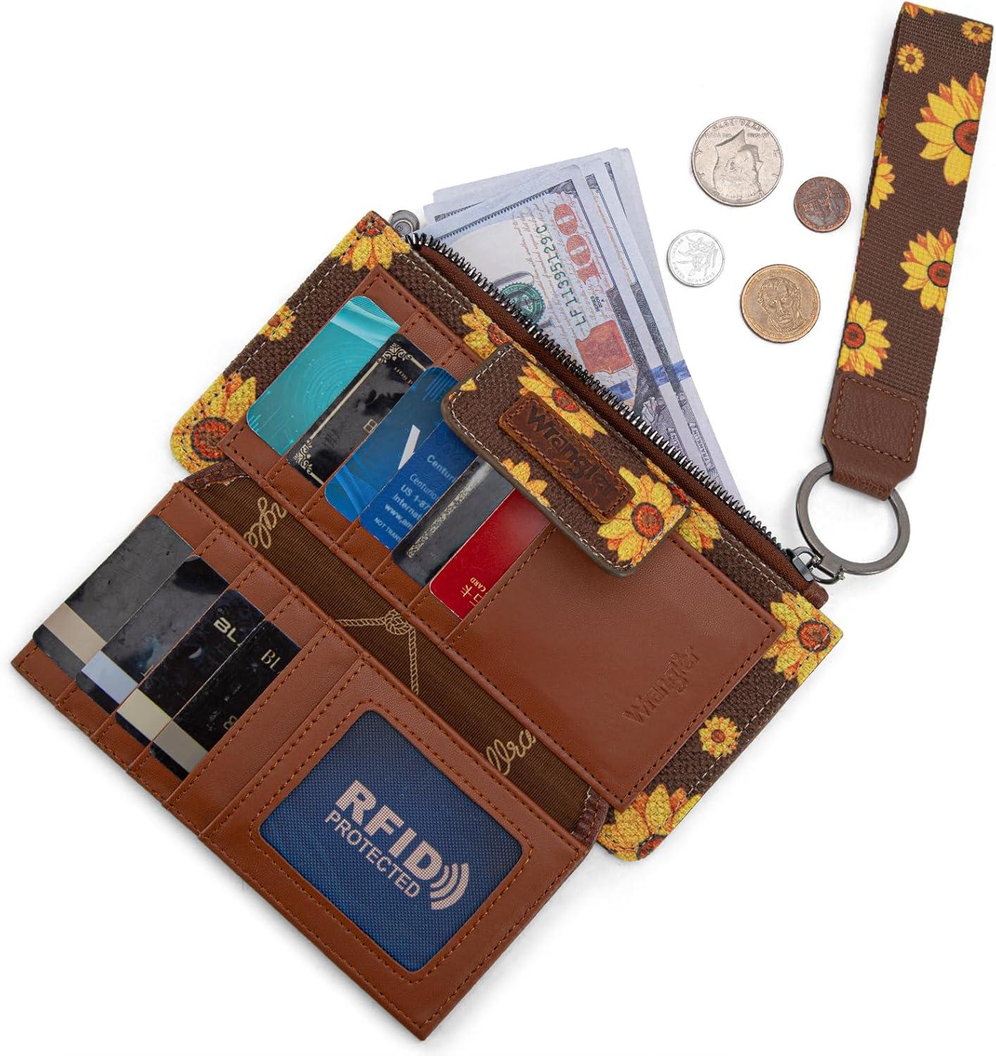 Wrangler Wristlet Wallets for Women Western Clutch Purse Rfid Wallet Womens(Artist-sunflower Brown)