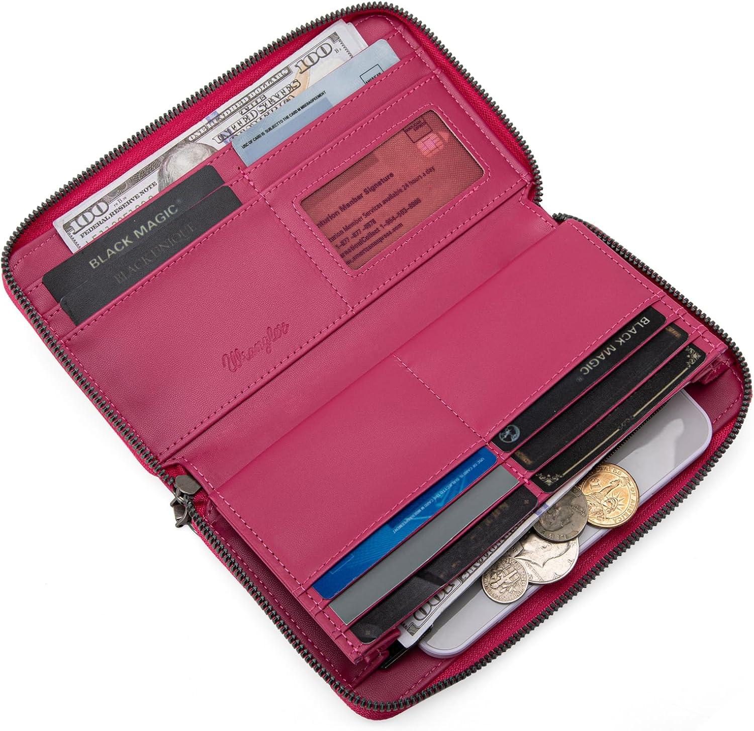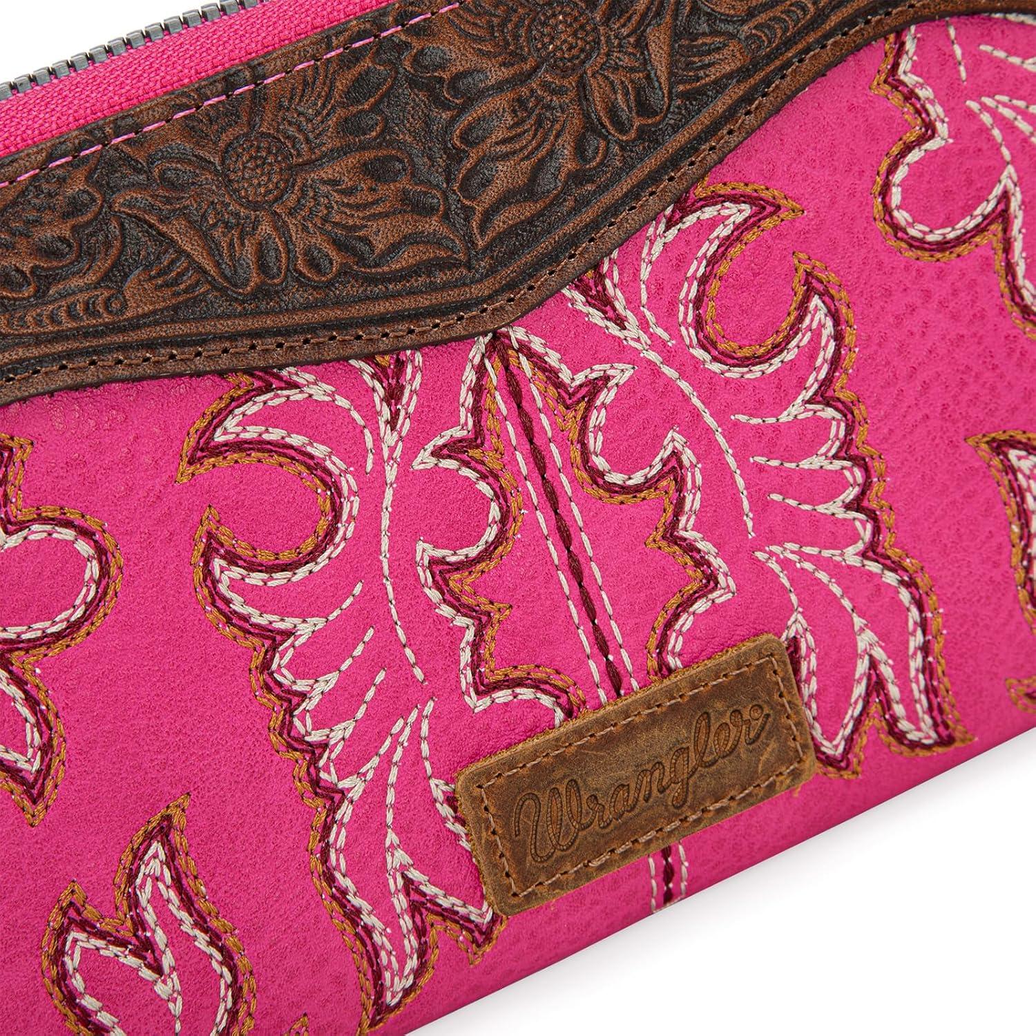 Wrangler Wristlet Wallets Western Wallet for Women Floral Tooled Womens Wallet Boot Stitch Purses(A-tooling-hot Pink)