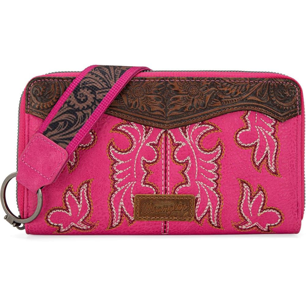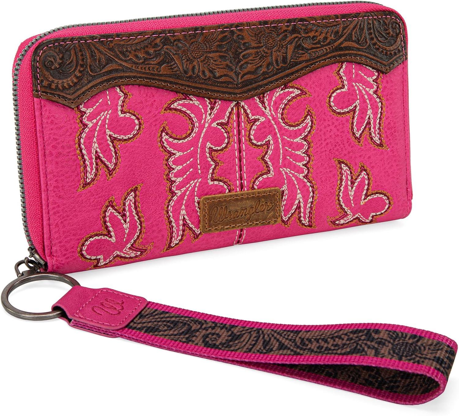 imageWrangler Wristlet Wallets Western Wallet for Women Floral Tooled Womens Wallet Boot Stitch PursesAtoolinghot Pink